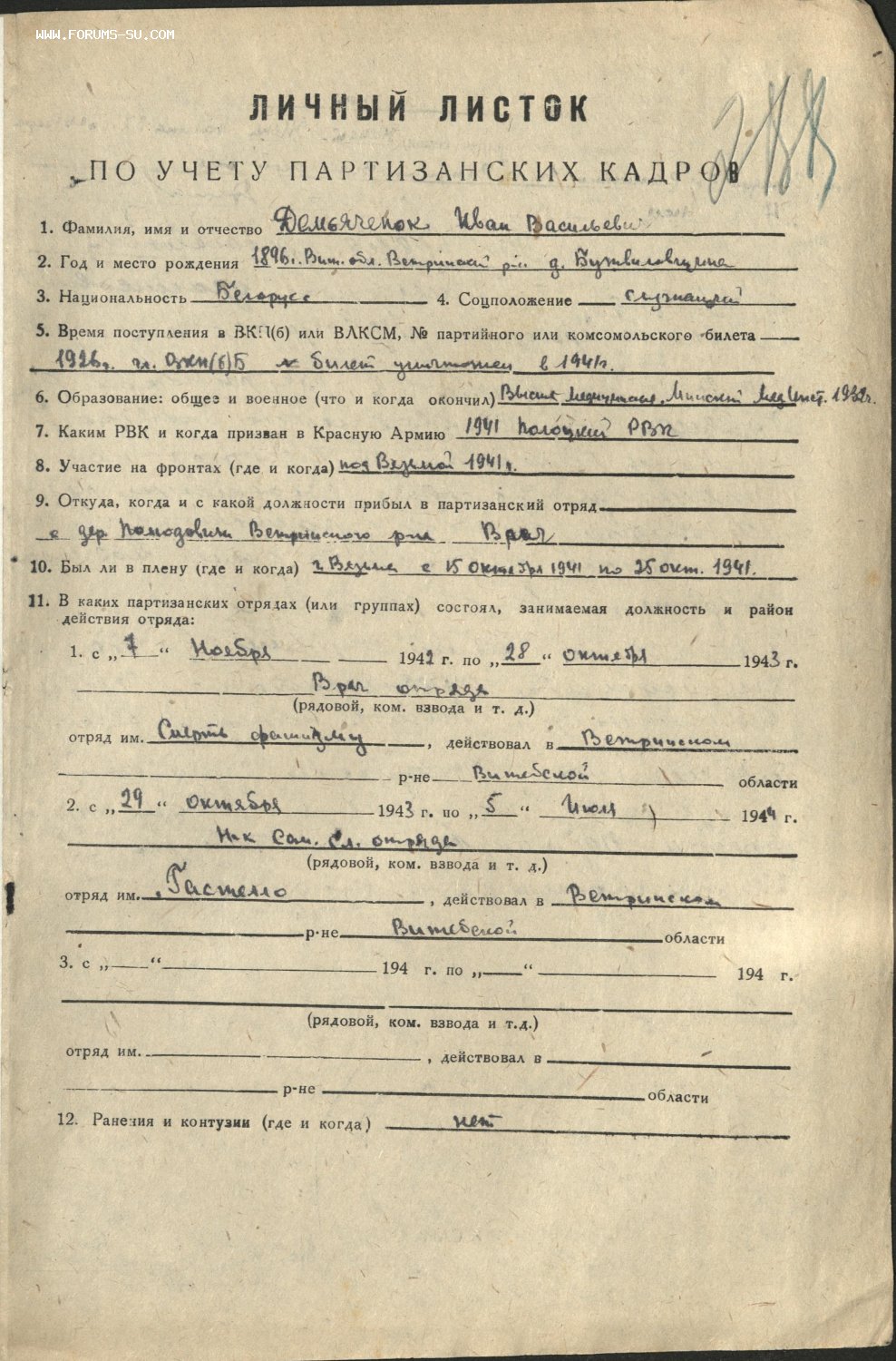 vandam писал(а):Перед тем как попасть в партизанский отряд находился в плену.
