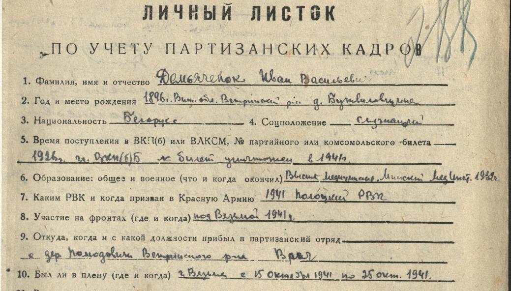 Перед тем как попасть в партизанский отряд находился в плену.