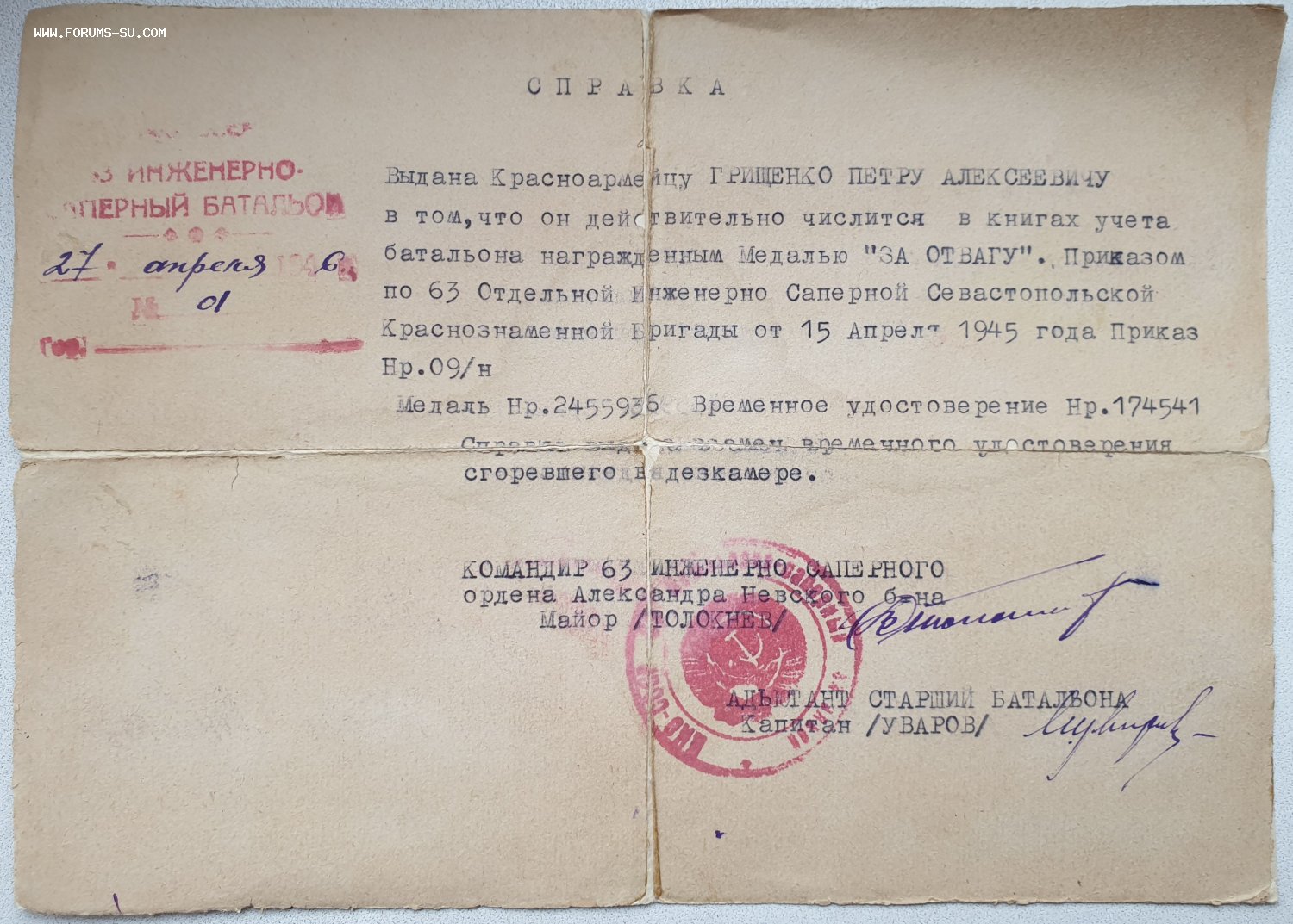 Но медаль перестала быть безымянной.
