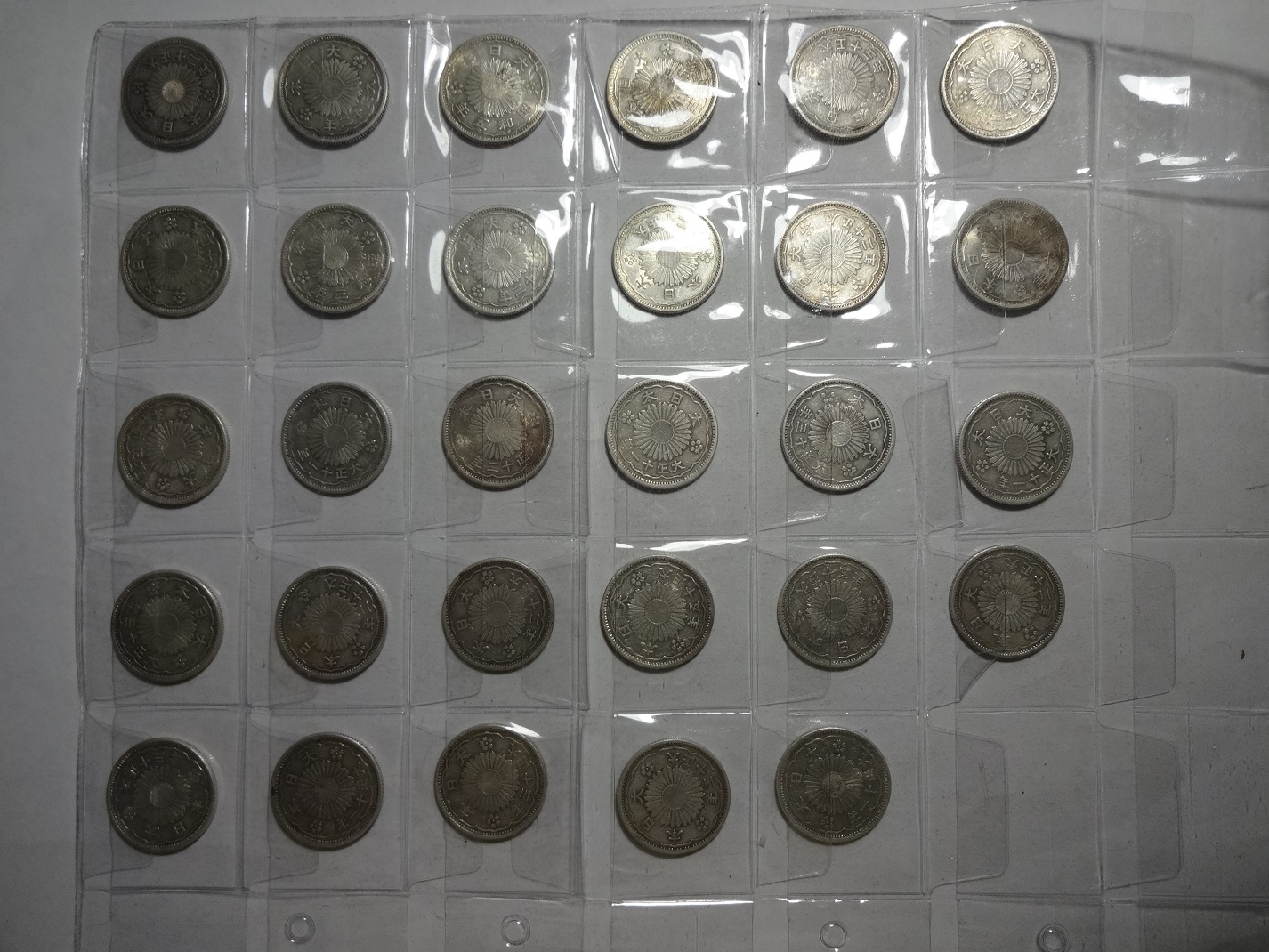 Лот из 64 монет 50 сен образца 1922-1938 г.г., серебро, в хорошем состоянии. Япония. Цена за 64 монеты 32000р.., По РФ почта на покупателе.