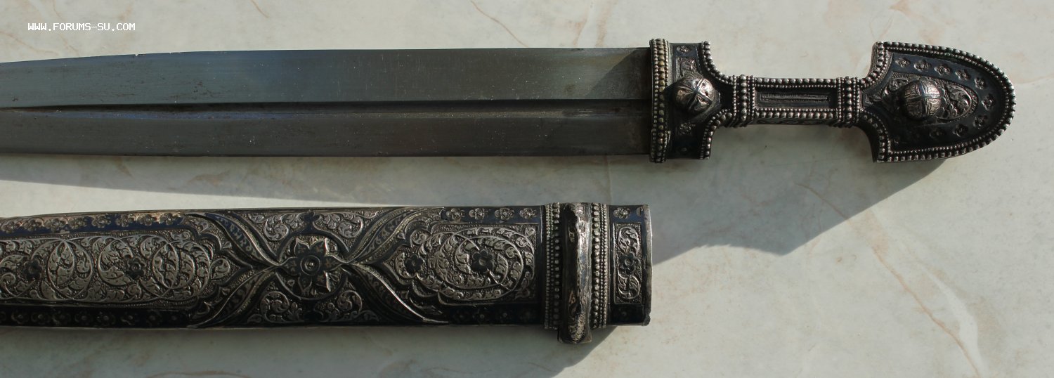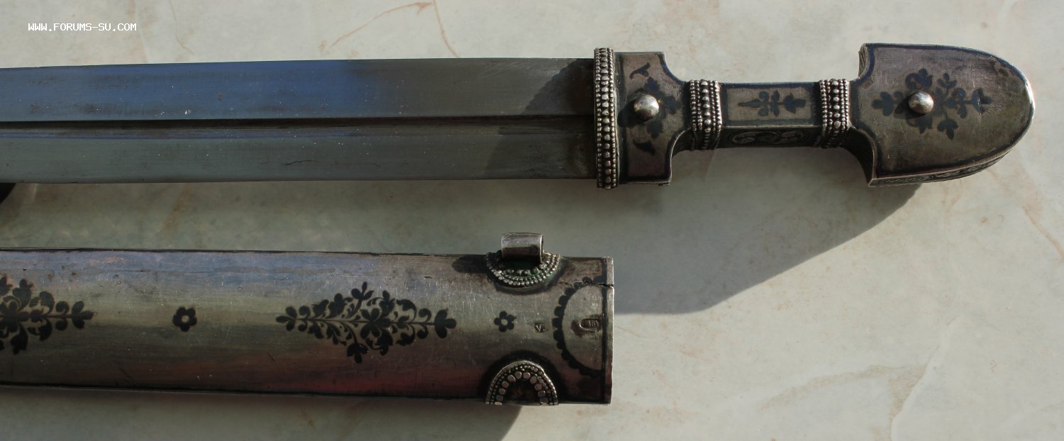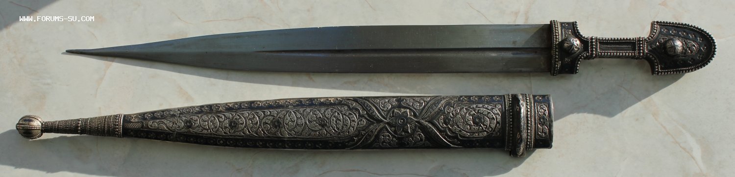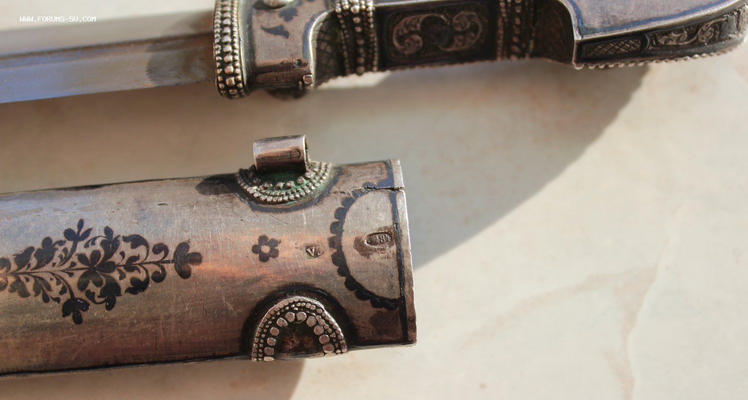 Оригинал! Кавказ, начало 20-го века. Размеры: общая длина 38,5 см; Длина клинка 27,5 см и ширина клинка 2,7 см. Кинжал изготовлен по спецзаказу для маленького джигита из княжеской или богатой семьи. Но ножнах стоит клеймо 84 Закавказского окружного пробирного управления и клеймо мастера.