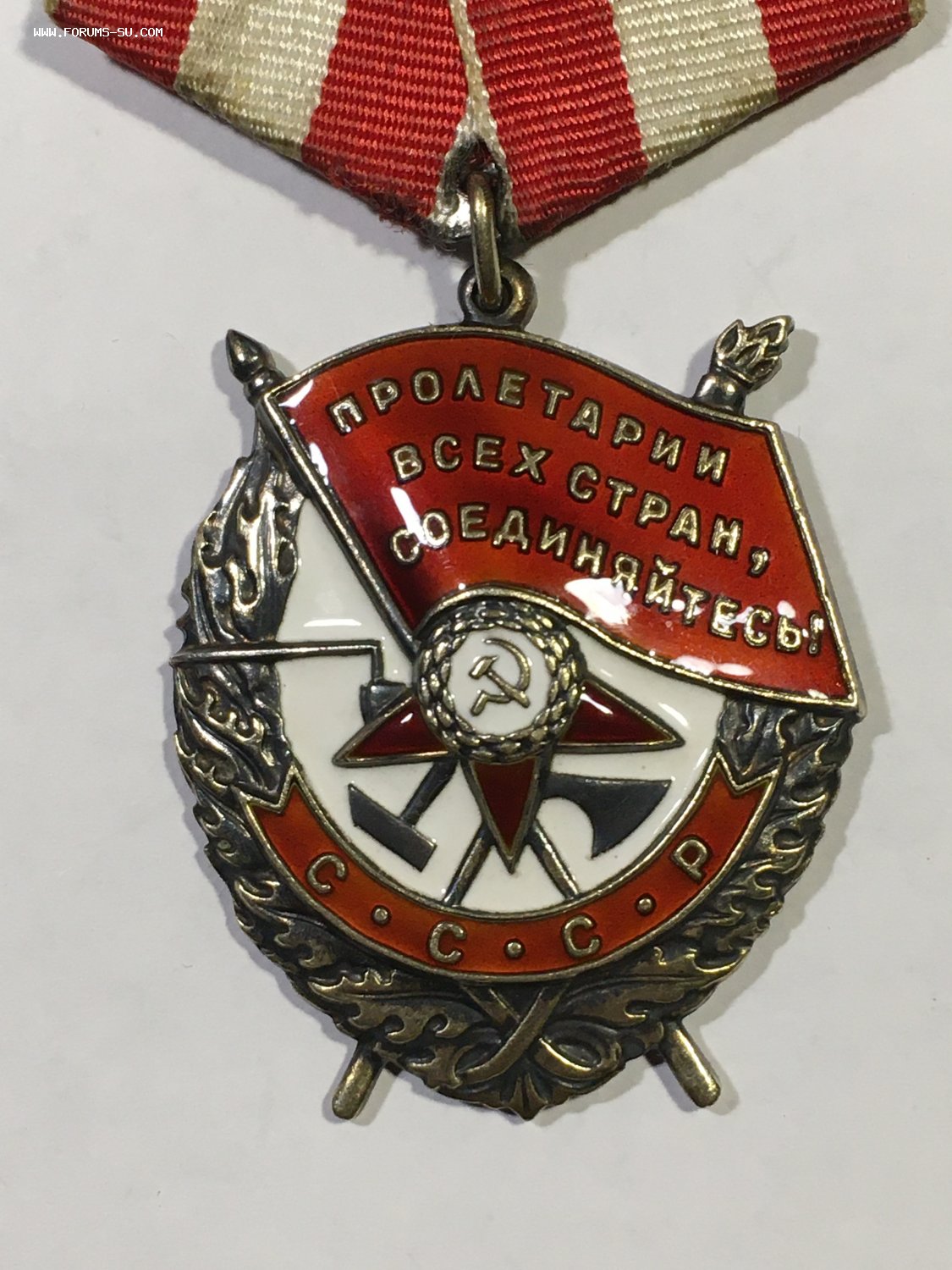 Если очень сильно придираться,есть микрочешуйка на краю знамени,видна только под большим увеличением,в остальном эмаль отличная.