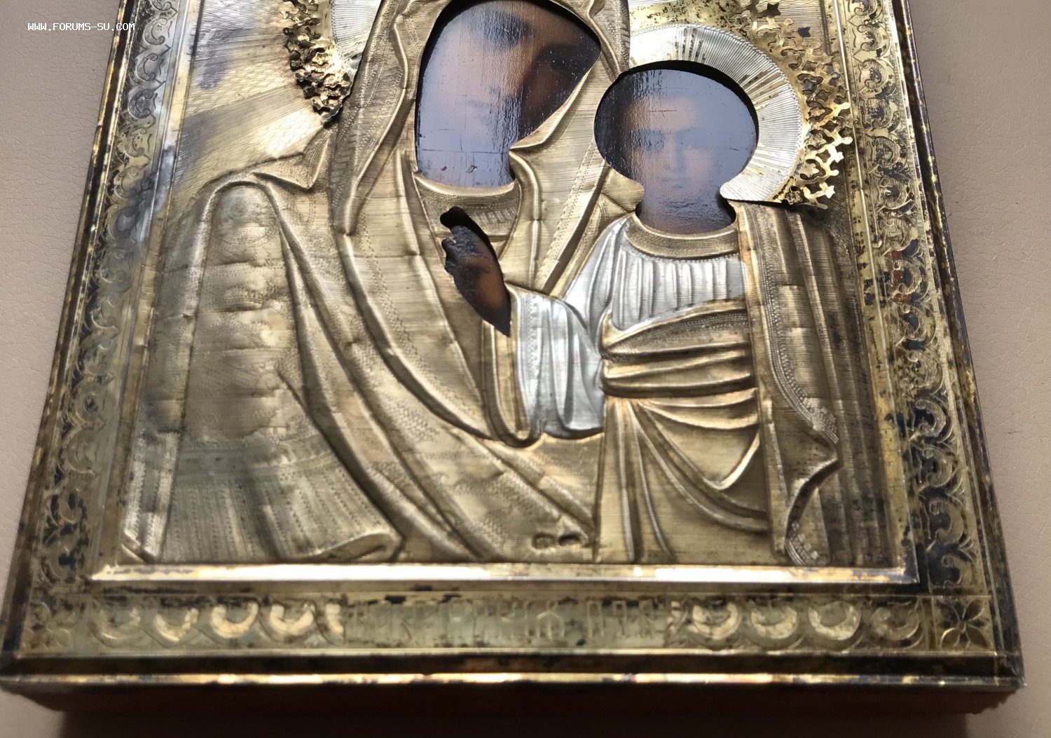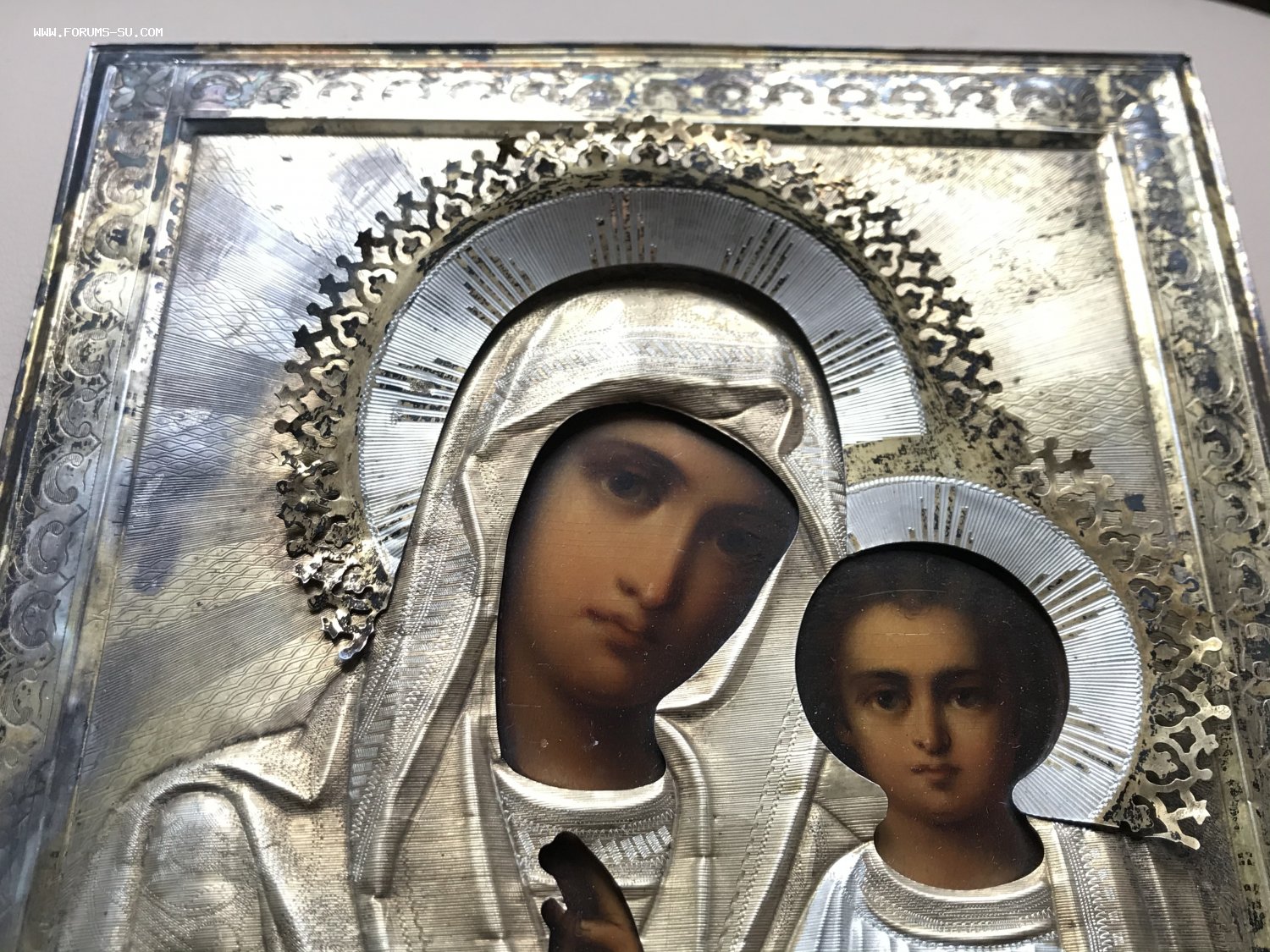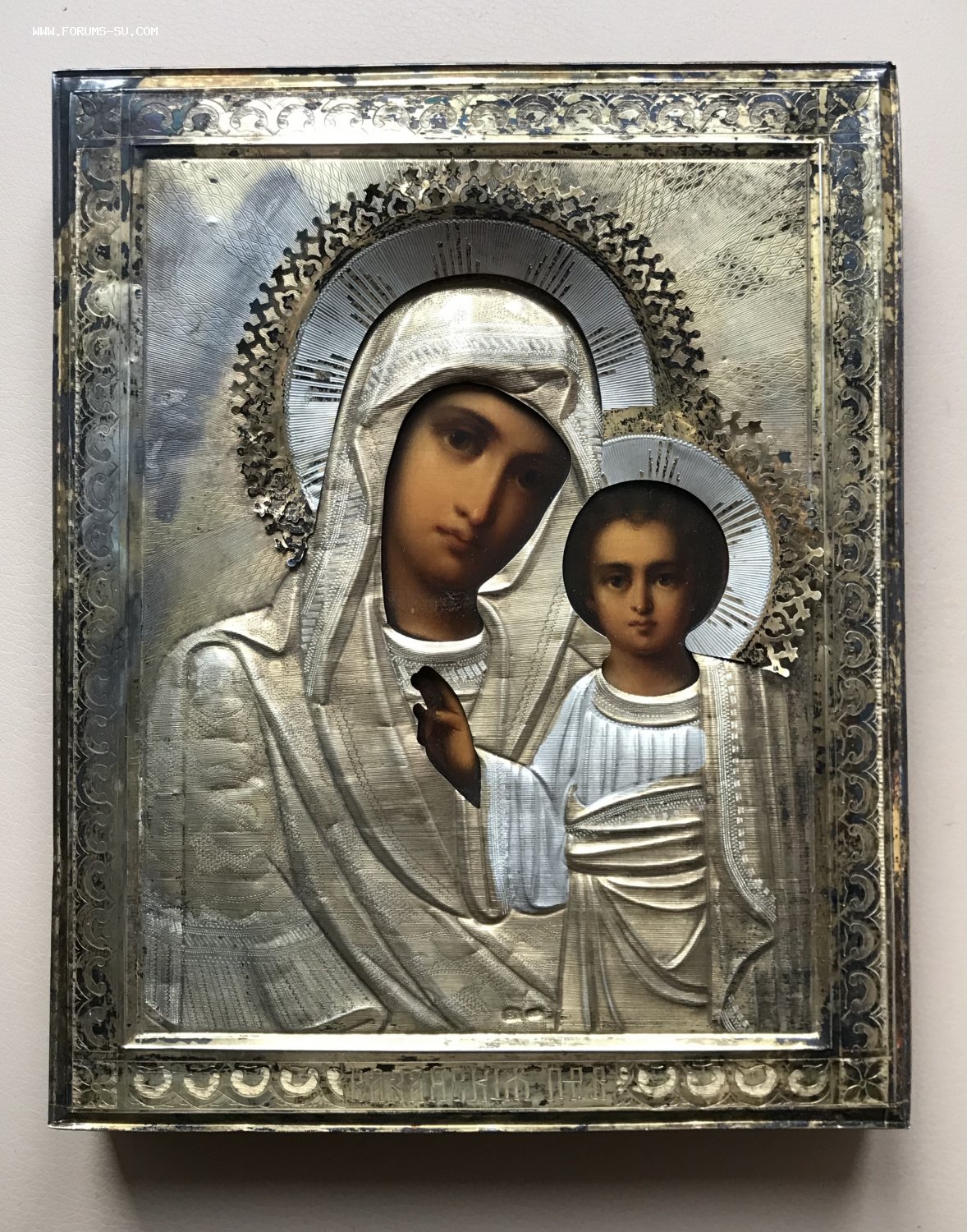 Икона Казанская Богородица в окладе. Серебряный оклад 84 пробы. Размер 22 х 18 см.