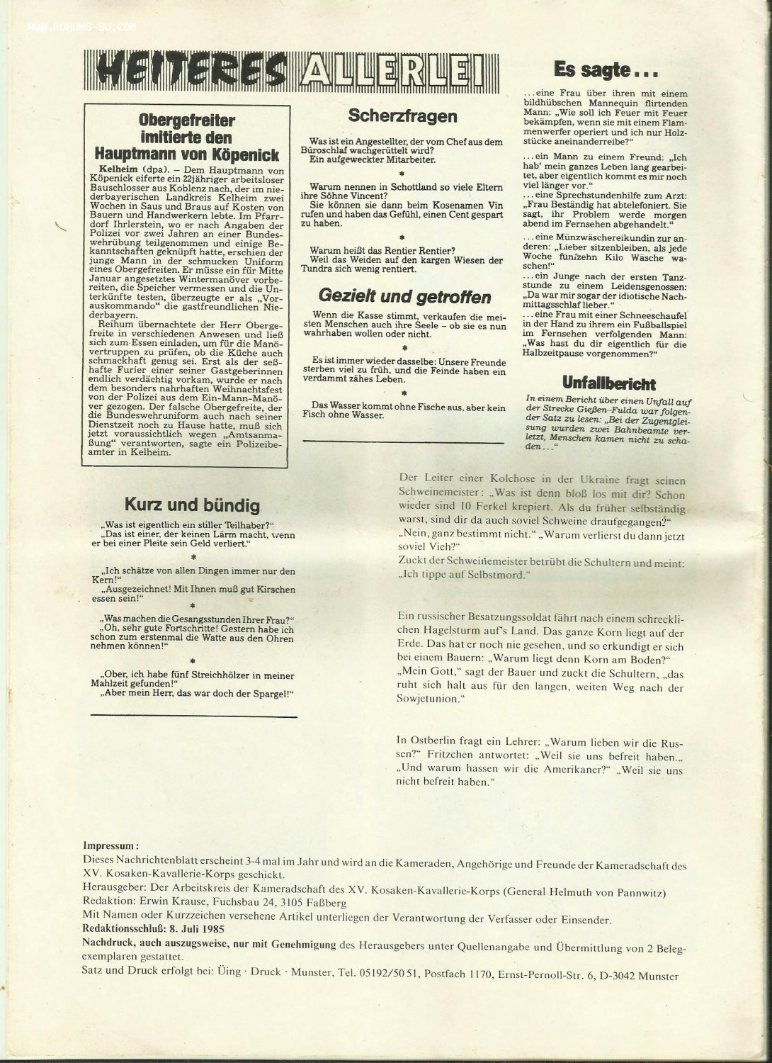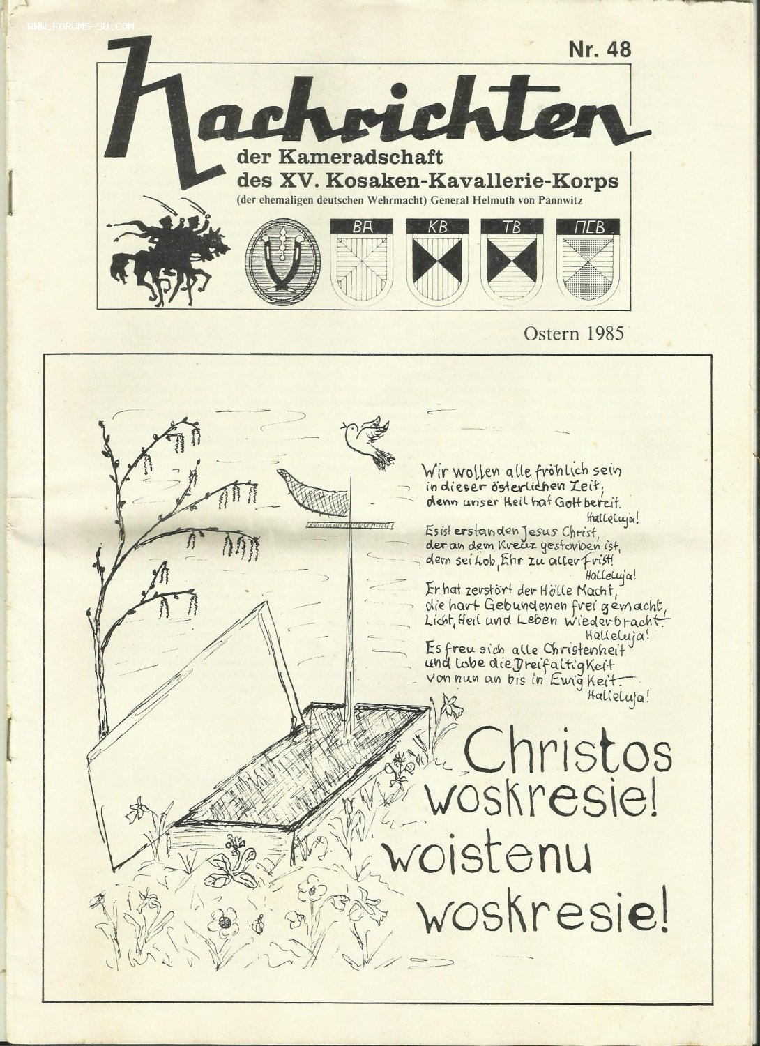 Журнал сообщения.Товарищество ветеранов XV Казачьего кавалерийского корпуса Панвица.1985.