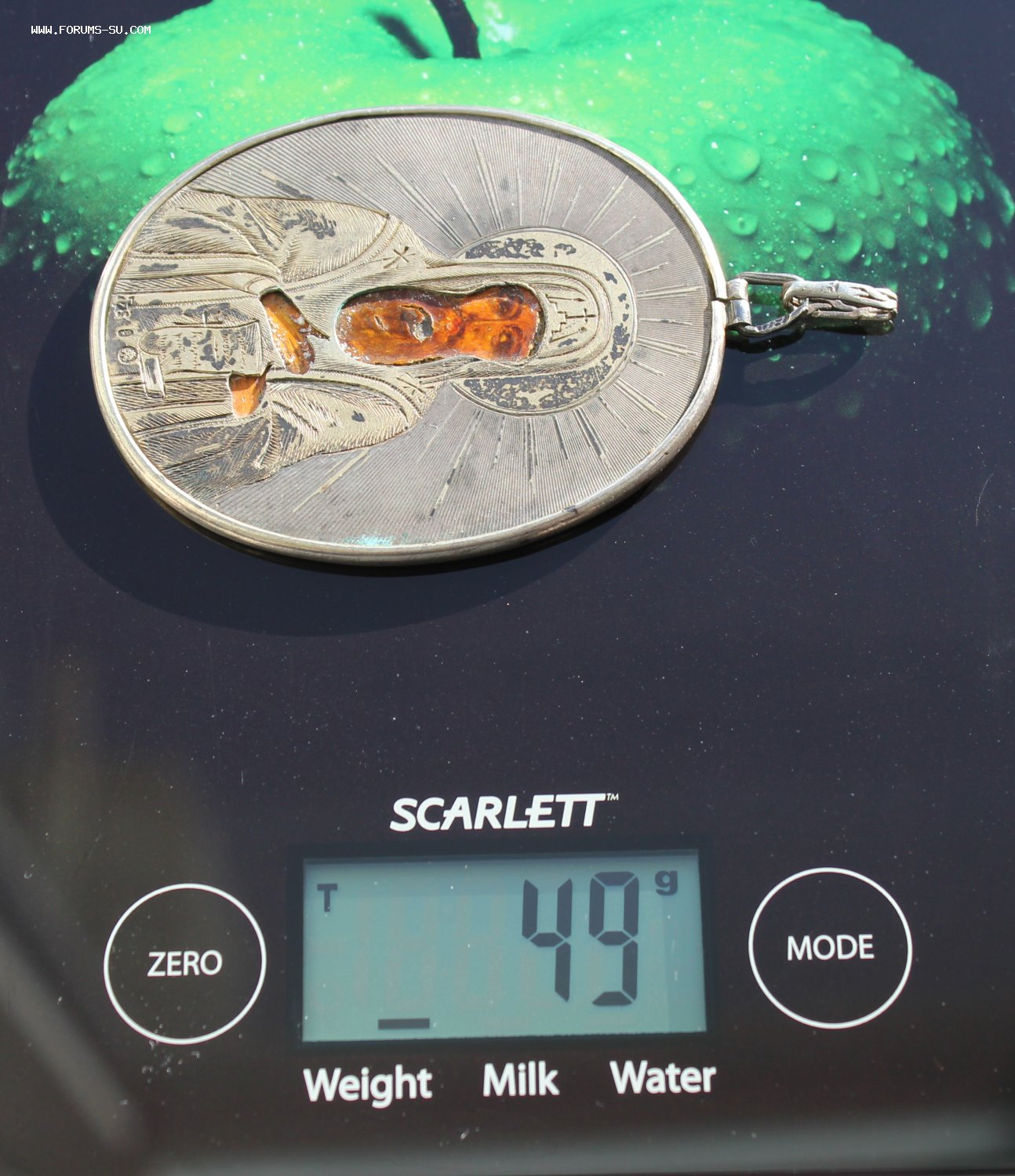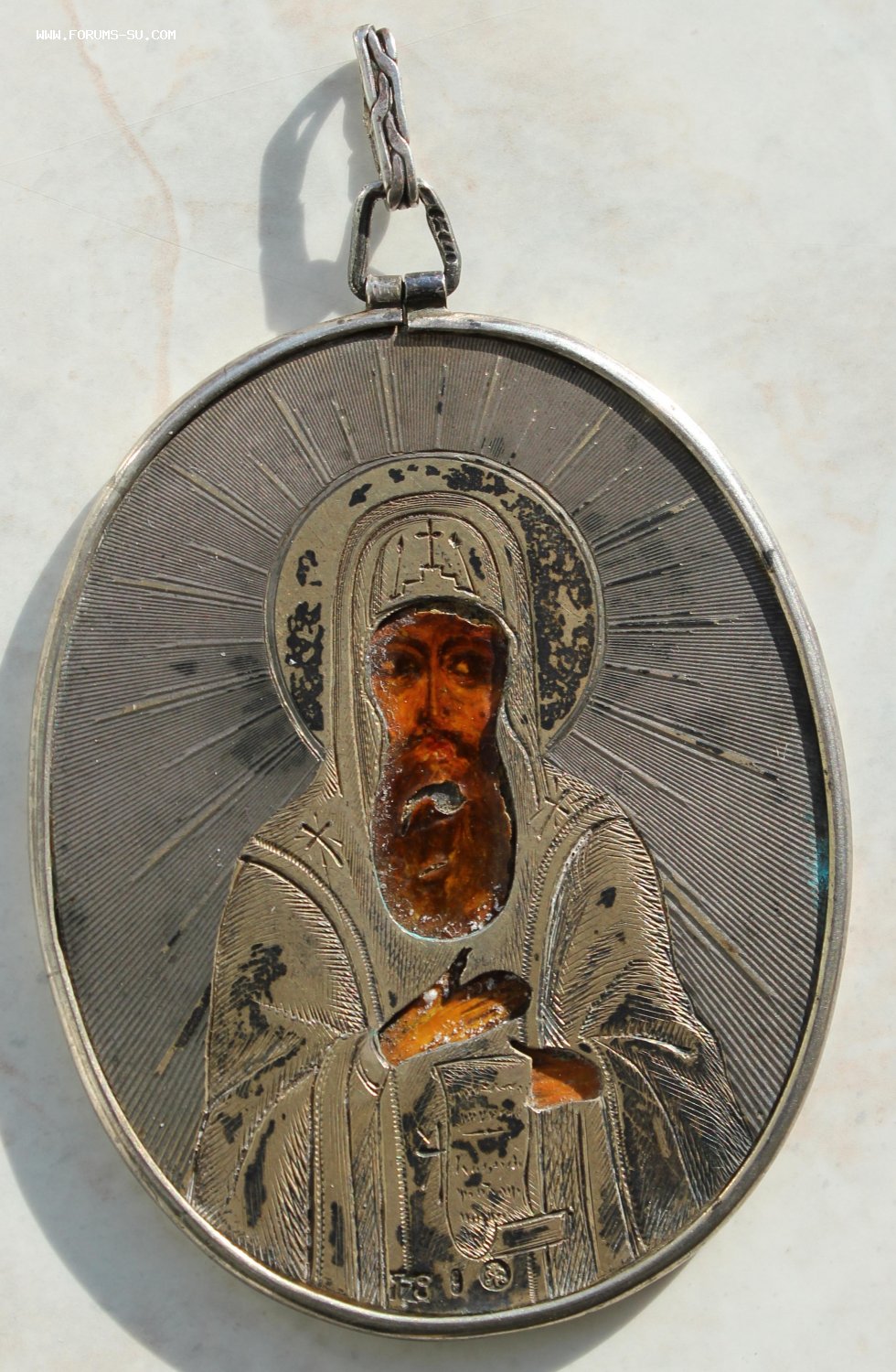 Состояние серебра отличное, слегка осталось позолота. Размер без ушка 54 на 68 мм. Стоит клеймо 84 Санкт-Петербугского пробирного управления и клеймо мастера "СЕ".