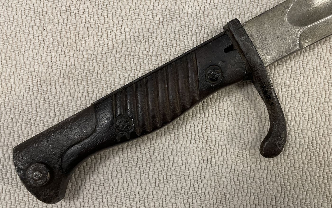 Навершие рукояти в раковинах от коррозии.