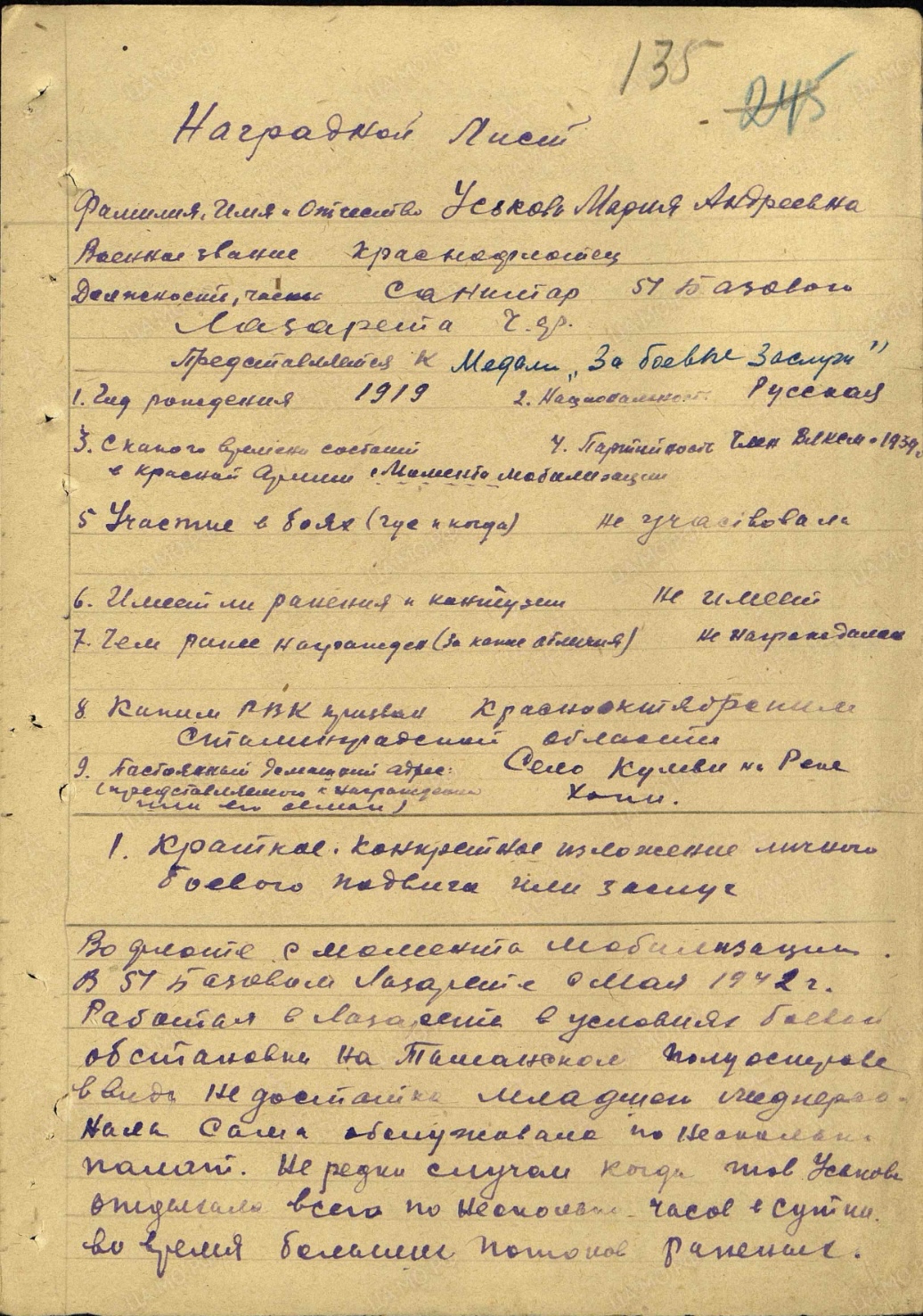 УК 1920 г.р в Н.Л 1919г.р скорее всего 1920 г.р кавалерша