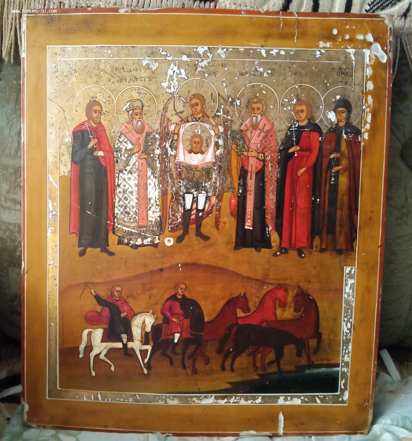 Святые Флор, Модест Власий,Лавр, Анастасия.Размер 30,5*35,5 см толщина 3,2 см Тяжелая. По серебру. Фикс. 30 т.р