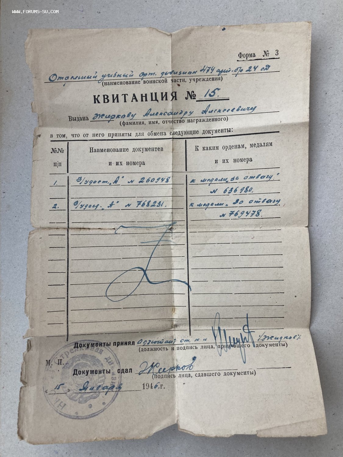 В наличии книжка купонов к орденской, удостоверения к юбилейным медалям и различные интересные архивные справки.