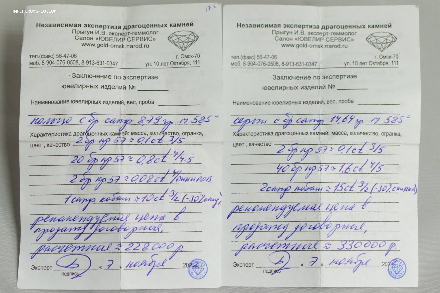 Гарнитур с сапфирами и бриллиантами в белом золоте 585 с заключением.