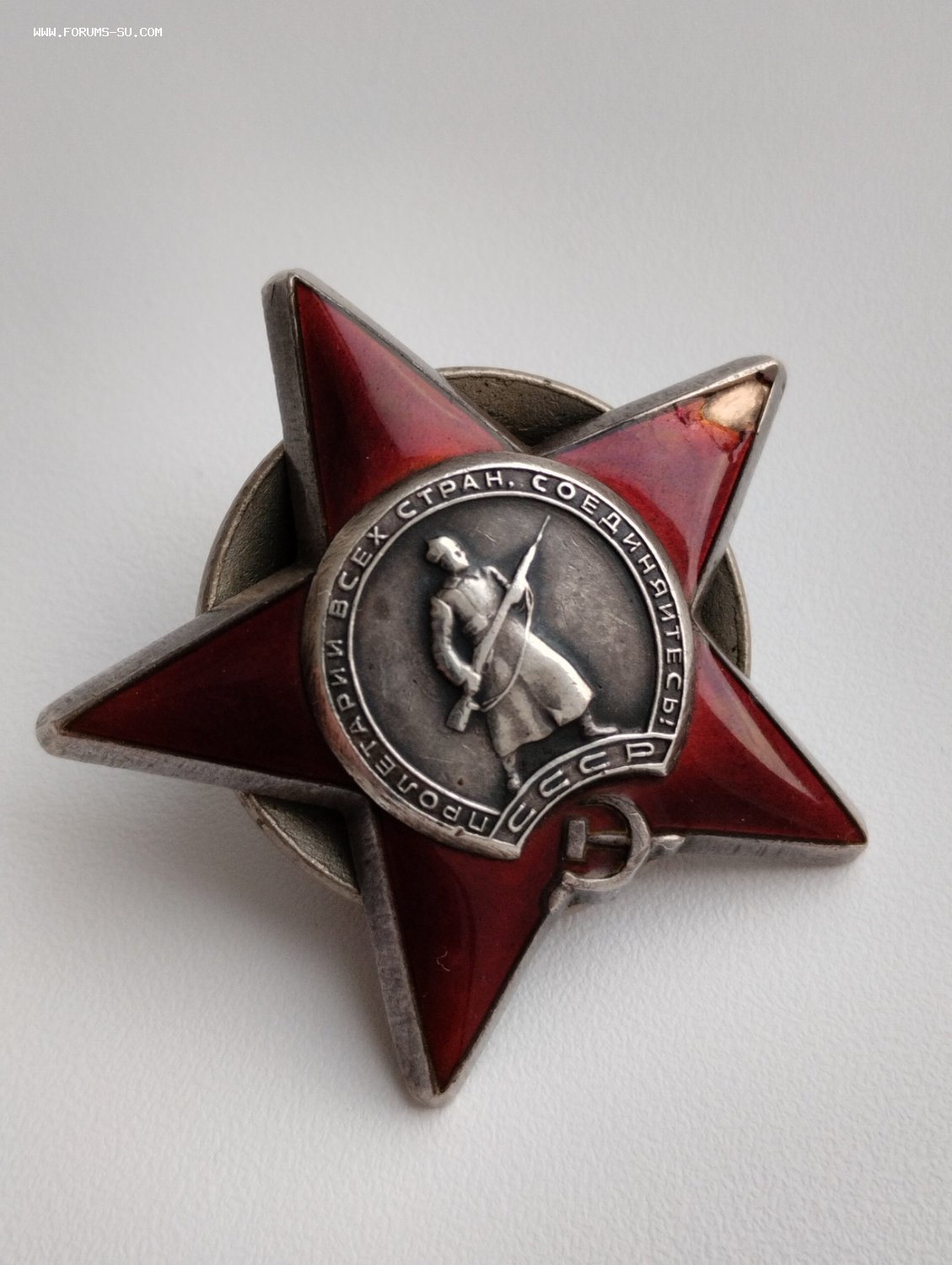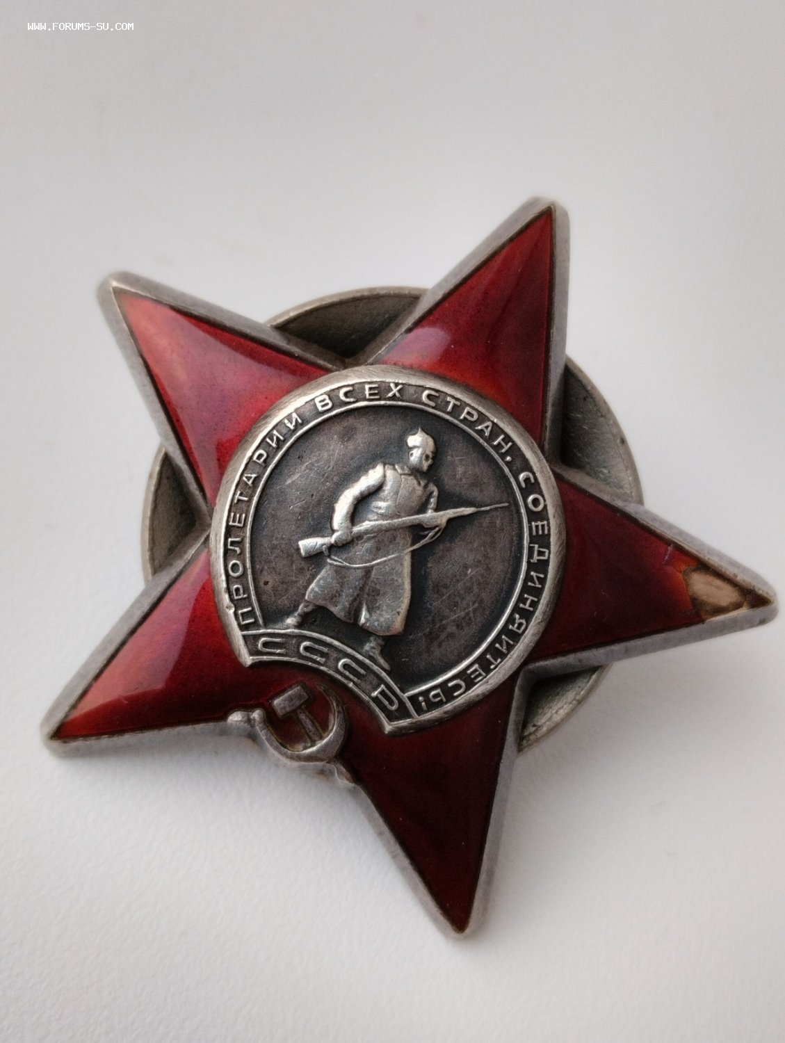 Предложите по РФ. Почта 1 класс 250 руб. На кончике луча на 3 часа старый скол. Гайка накручивается хорошо. Знак на командира транспортной роты 117-го стрелкового полка 23-й стрелковой дивизии.