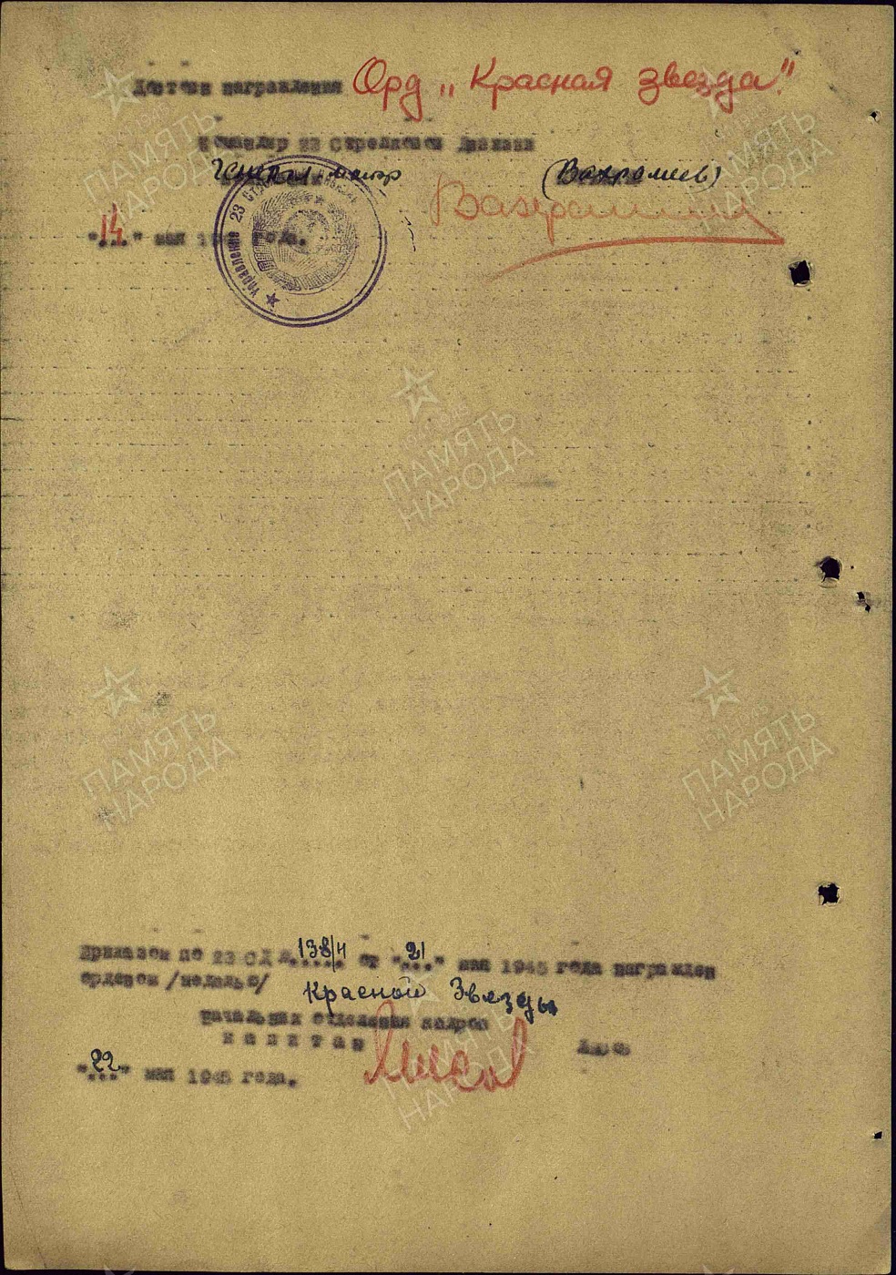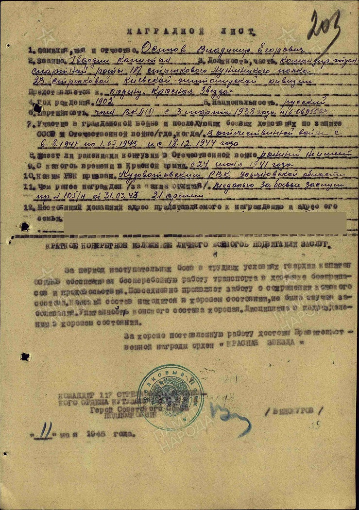 В действующей армии с 09.07.1943 г. по 09.05.1945 г.