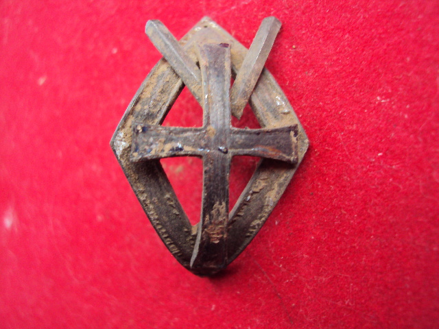 Гнутый царский знак школы прапорщиков, металл белого цвета, эмаль утрачена, общее состояние на фото, любое дополнительное фото по запросу.