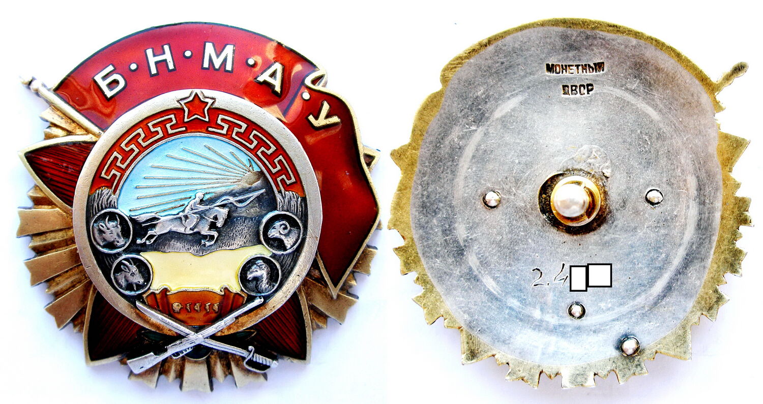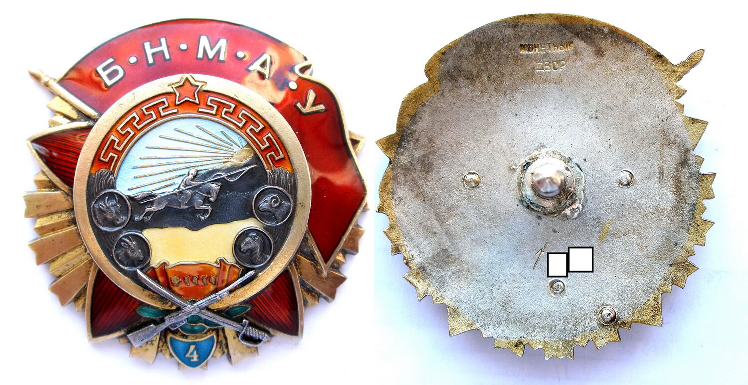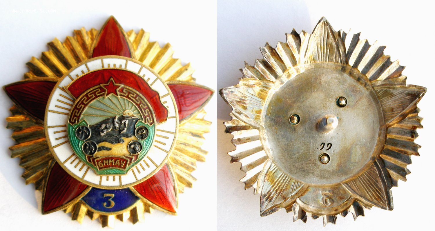 Монголия. Орден Боевого Красного Знамени 3-е награждение (или повторное), (1945-1970 гг), двухзначный номер.