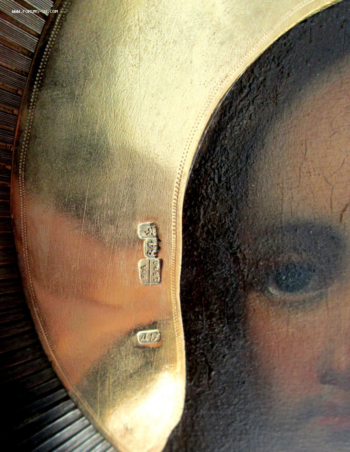 На обороте родная бархотка. Клейма на венце и окладе совпадают, так же с торца венца стоит цифра 84.