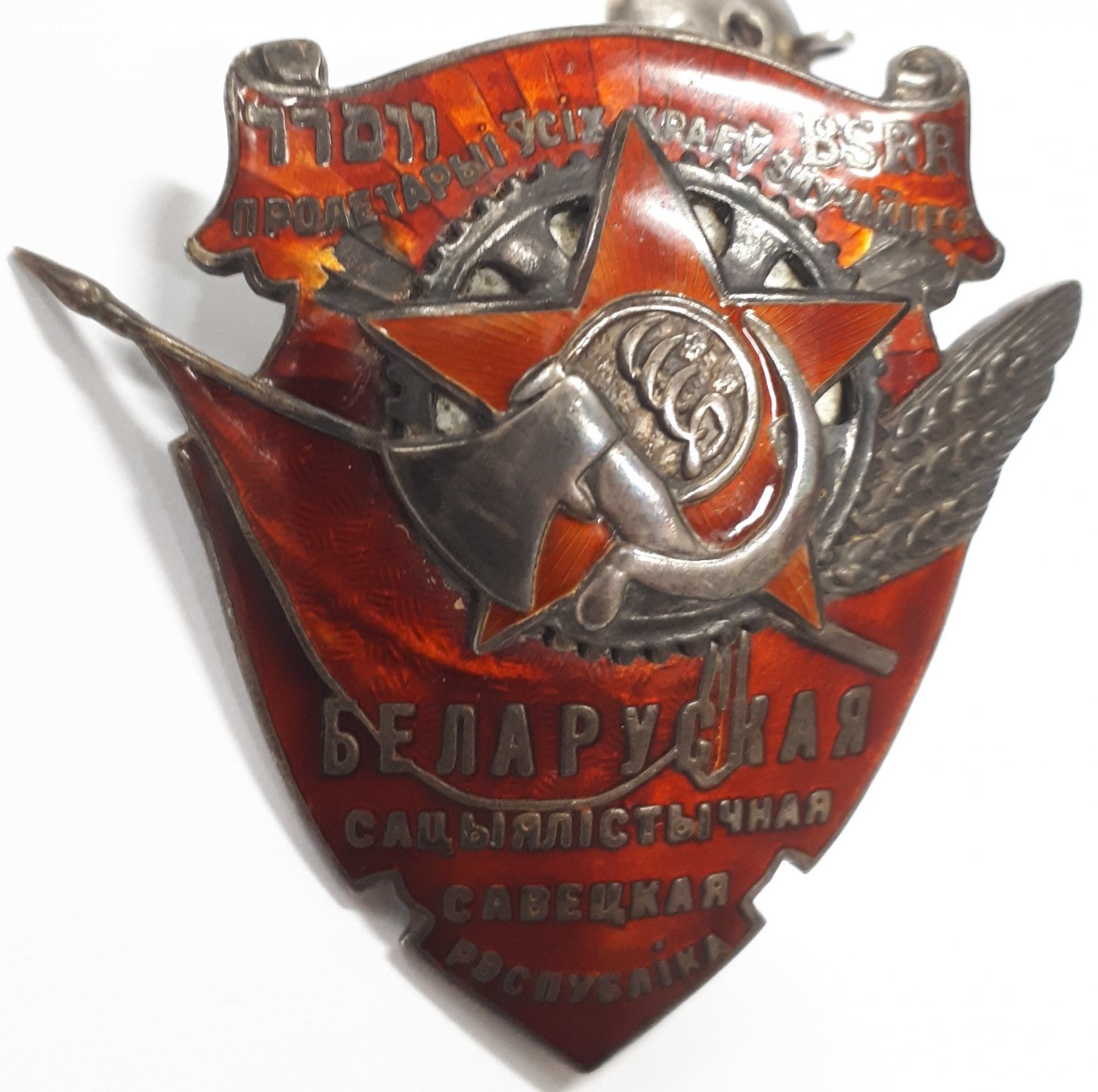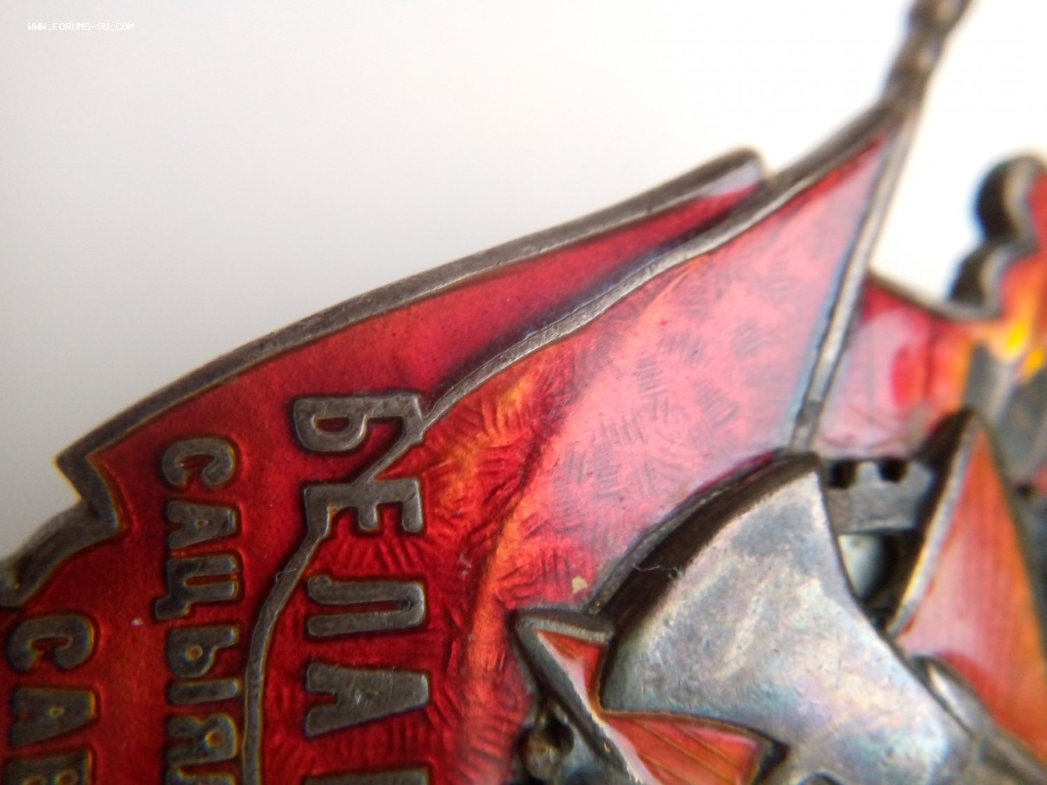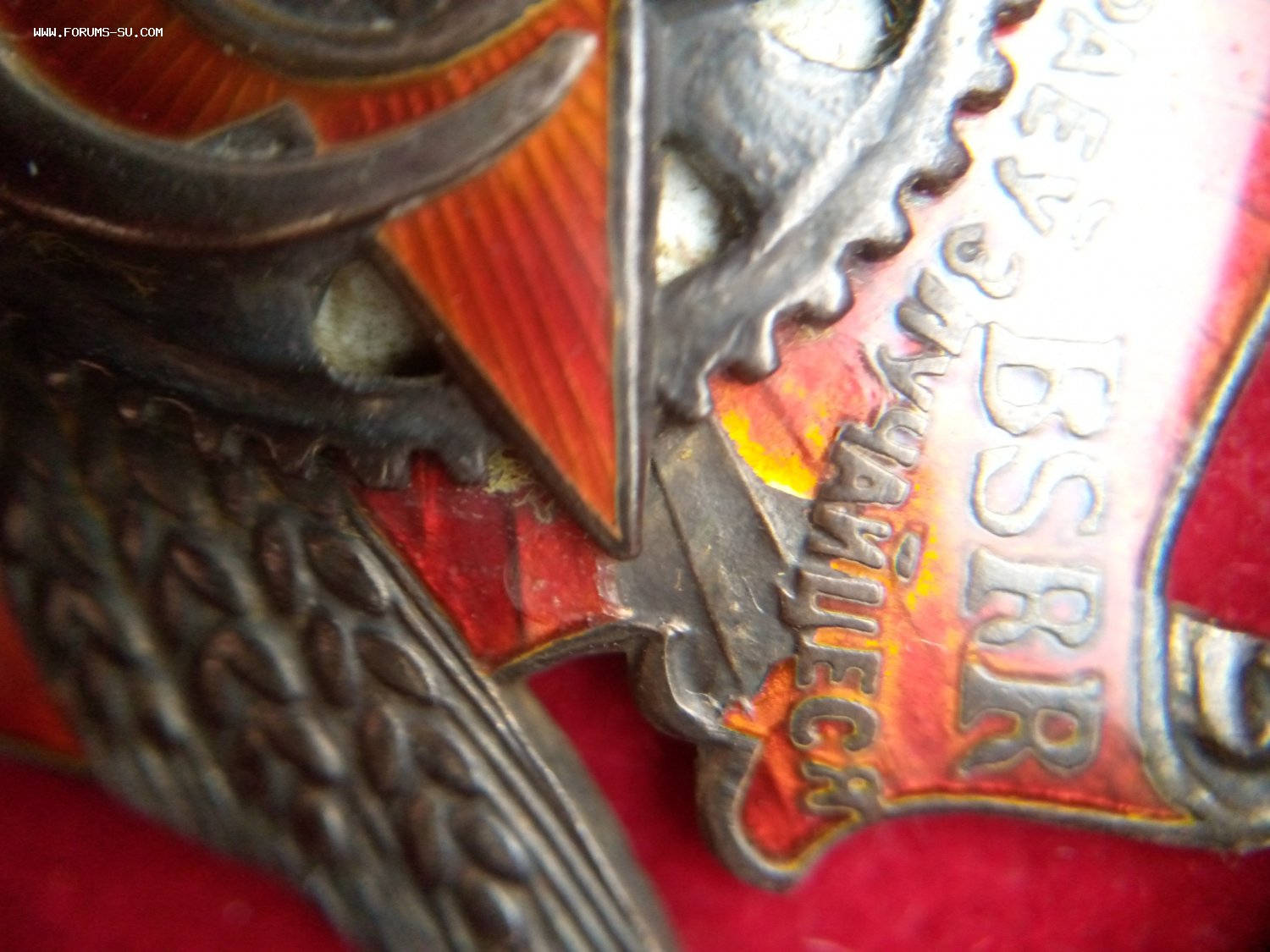 Знак очень редкий. Изготавливался не на МД, а в Московской ювелирной мастерской Каткова. Поэтому разновидности скорее всего были. Указанное стрелочкой место в букве не отторгает. Наоборот.