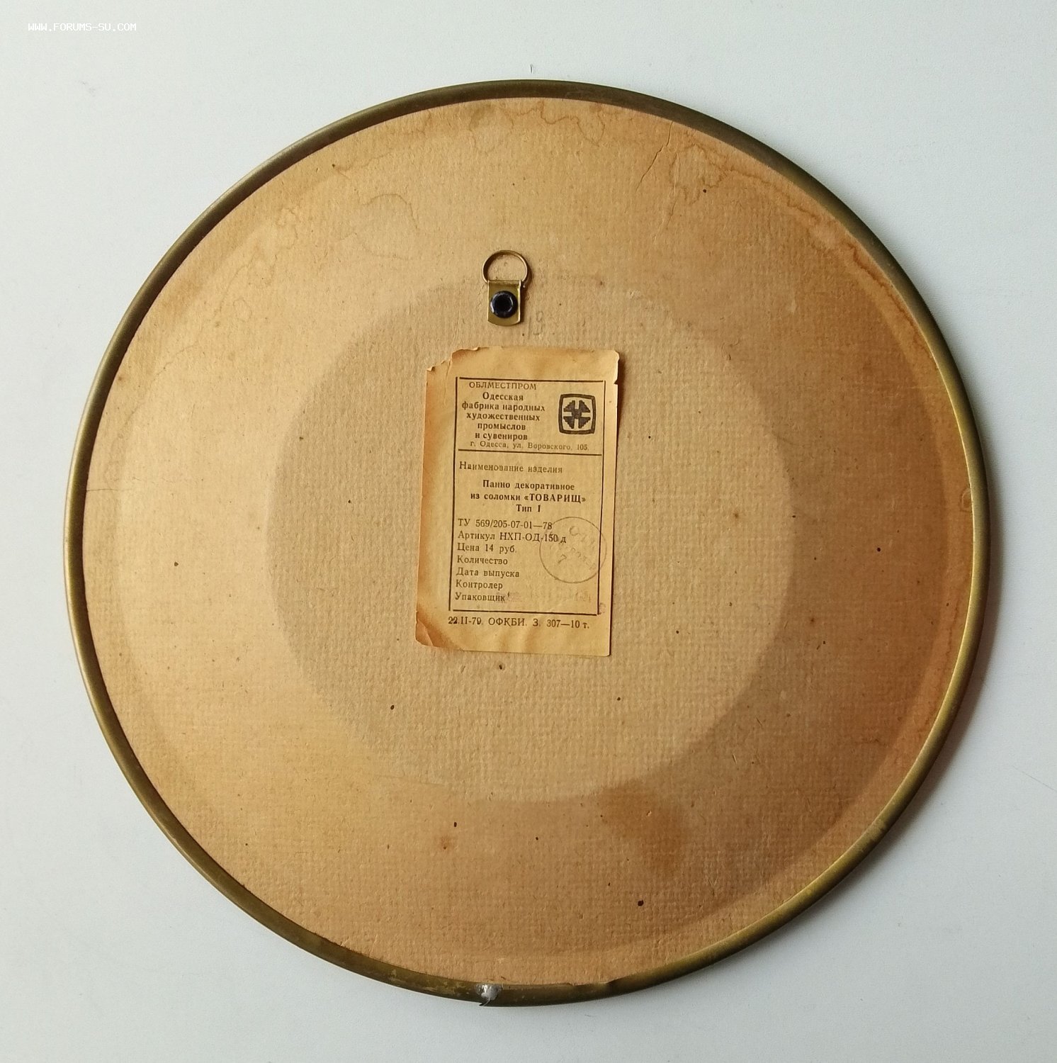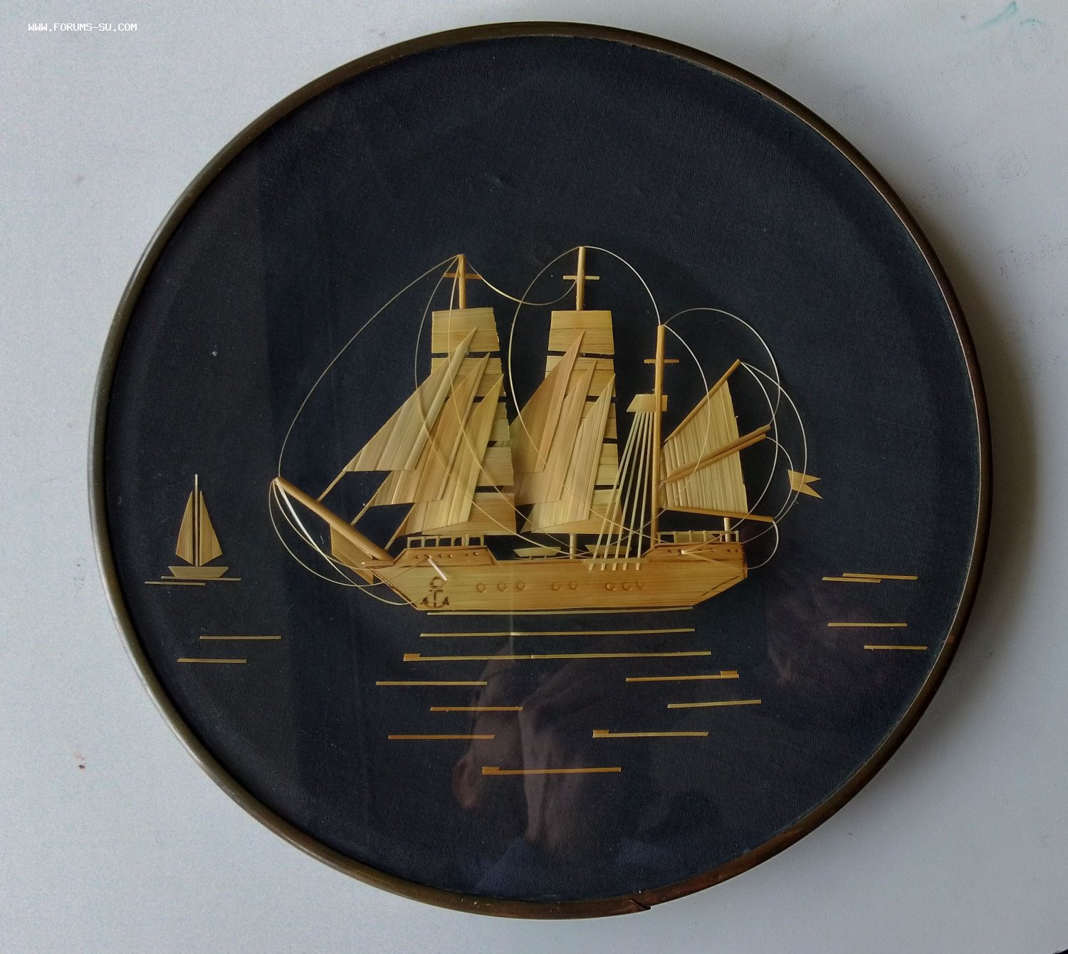 Диаметр 28см рамка латунь, стекло, картон, ткань, соломка