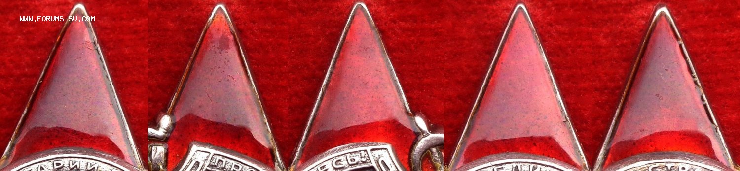 1) Орден Красной Звезды МЗПП ( Московский завод "Платинаприбор ) - На кончике лучика на 9 часов - мелкая чешуйка, на кончике лучика на 7 часов - пластичная чешуя. Состояние каждого лучика показал отдельно. Вся эмаль родная.