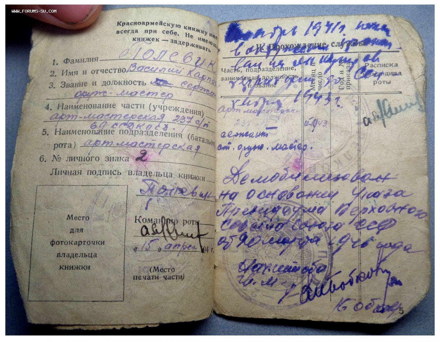 Предлагаю в Вашу Коллекцию - Комплект на Батальонного Оружейного Мастера 237 стрелкового Полка, 69 Стрелковой Севской Дважды Краснознаменной Ордена Суворова Дивизии.
