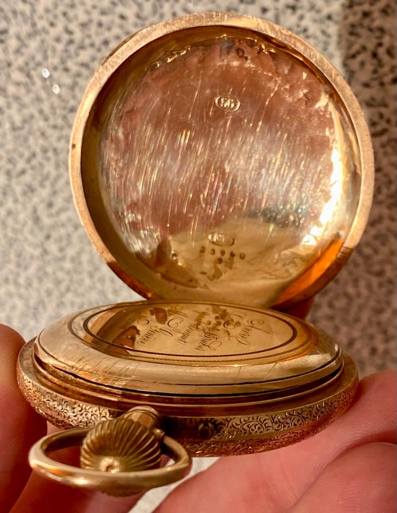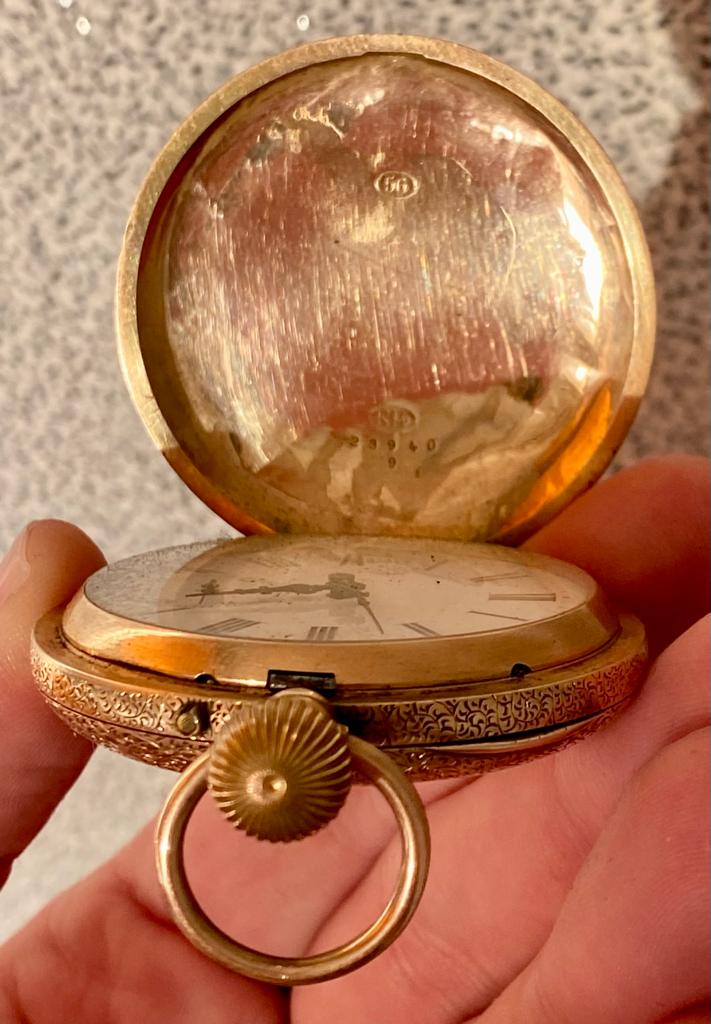 Золотые мужские карманные часы. Золото 56 пробы. Monard, Швейцария.