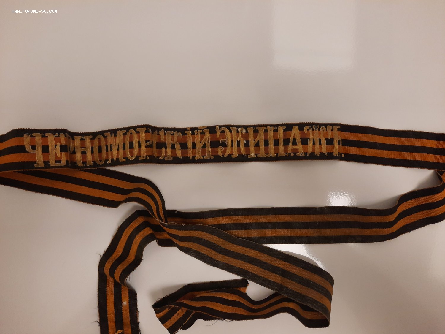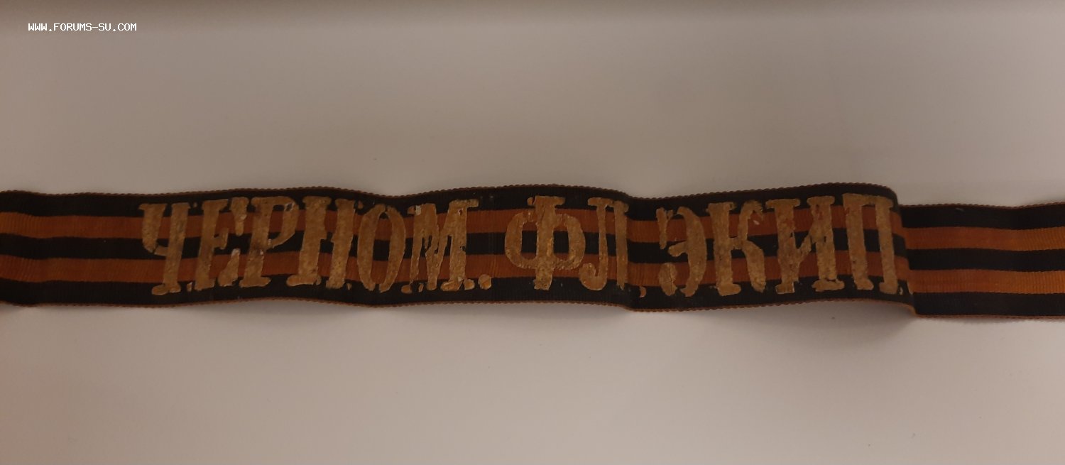 Лента гвардейская на бескозырку "ЧЕРНОМ.ФЛ.ЭКИП." -"ЧЕРНОМОРСКiЙ ЭКИПАЖЪ".