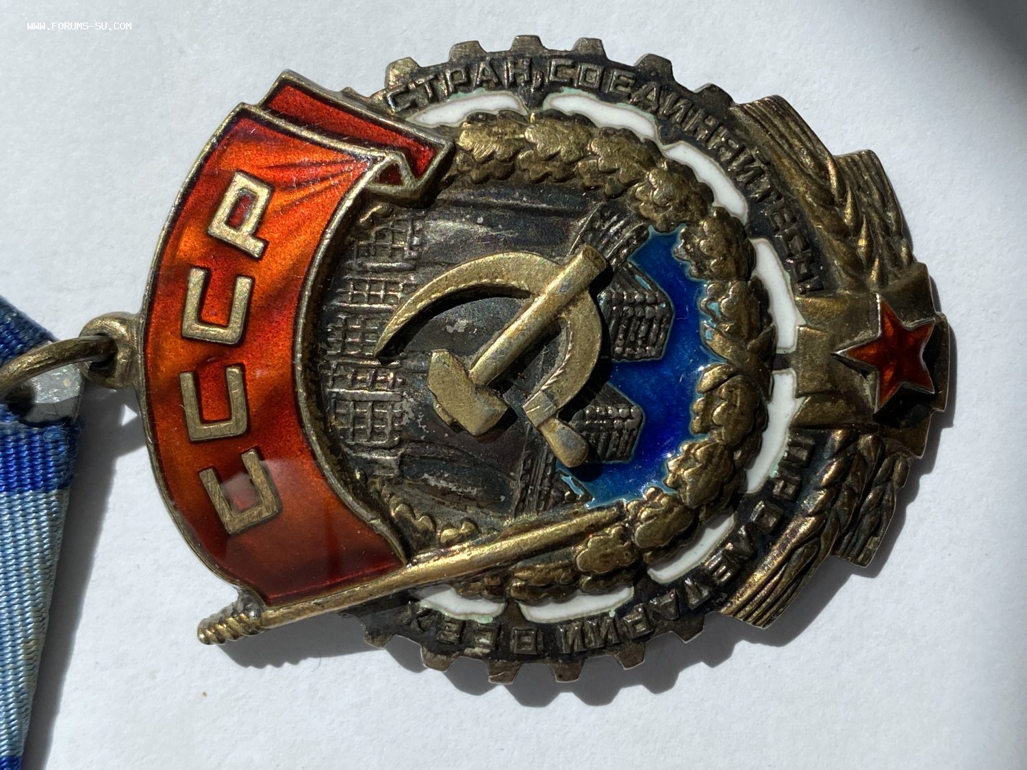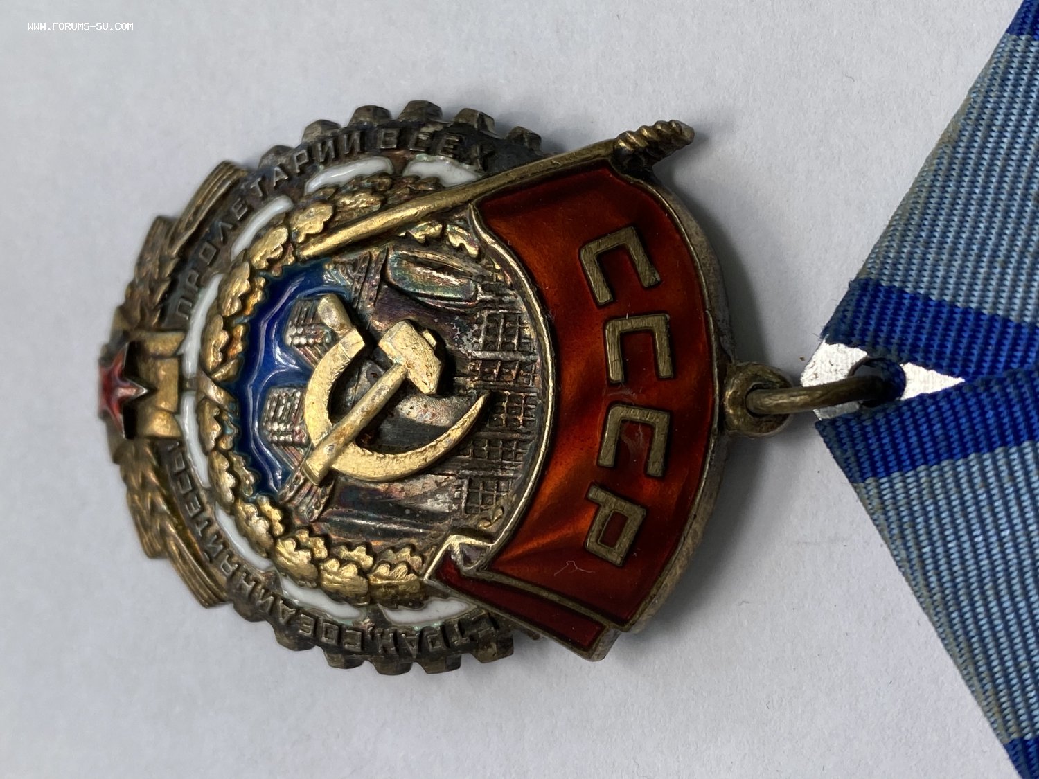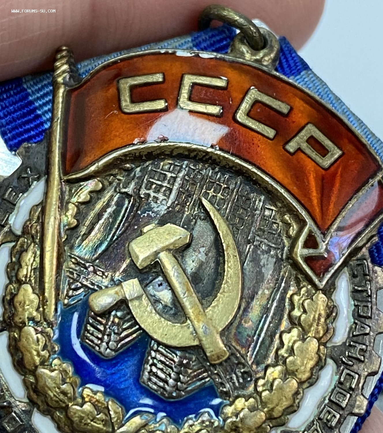 На знамени под буквами СССР на эмали есть микро-чешуйки - будет отдельное фото этого места.
