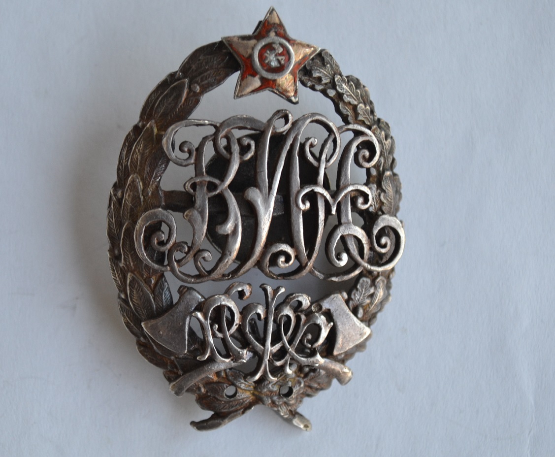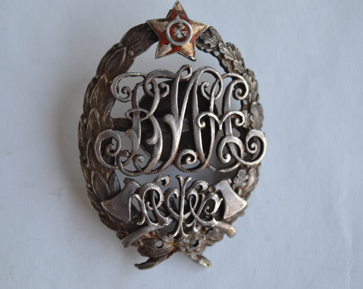 ЗНАК ВОЕННОЙ ИНЖЕНЕРНОЙ АКАДЕМИИ РККА 1919 год СЕРЕБРО RRR, размер 60х40 мм, накладка с годом утрачена. Предложите!