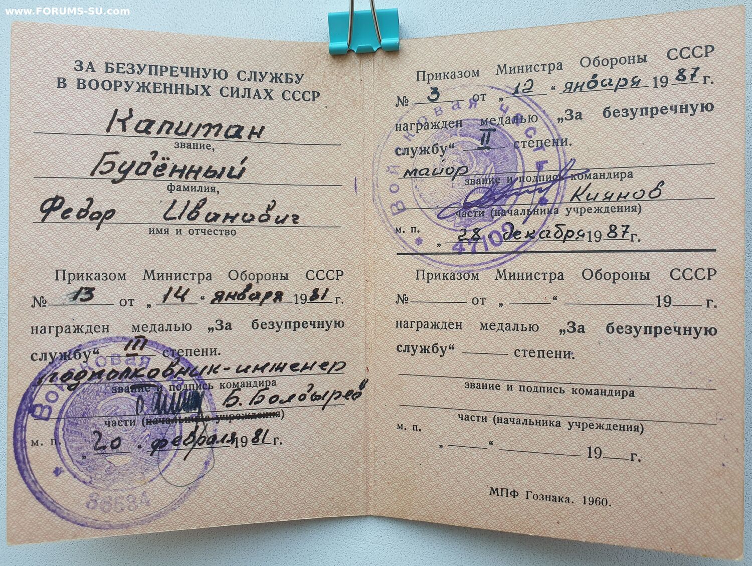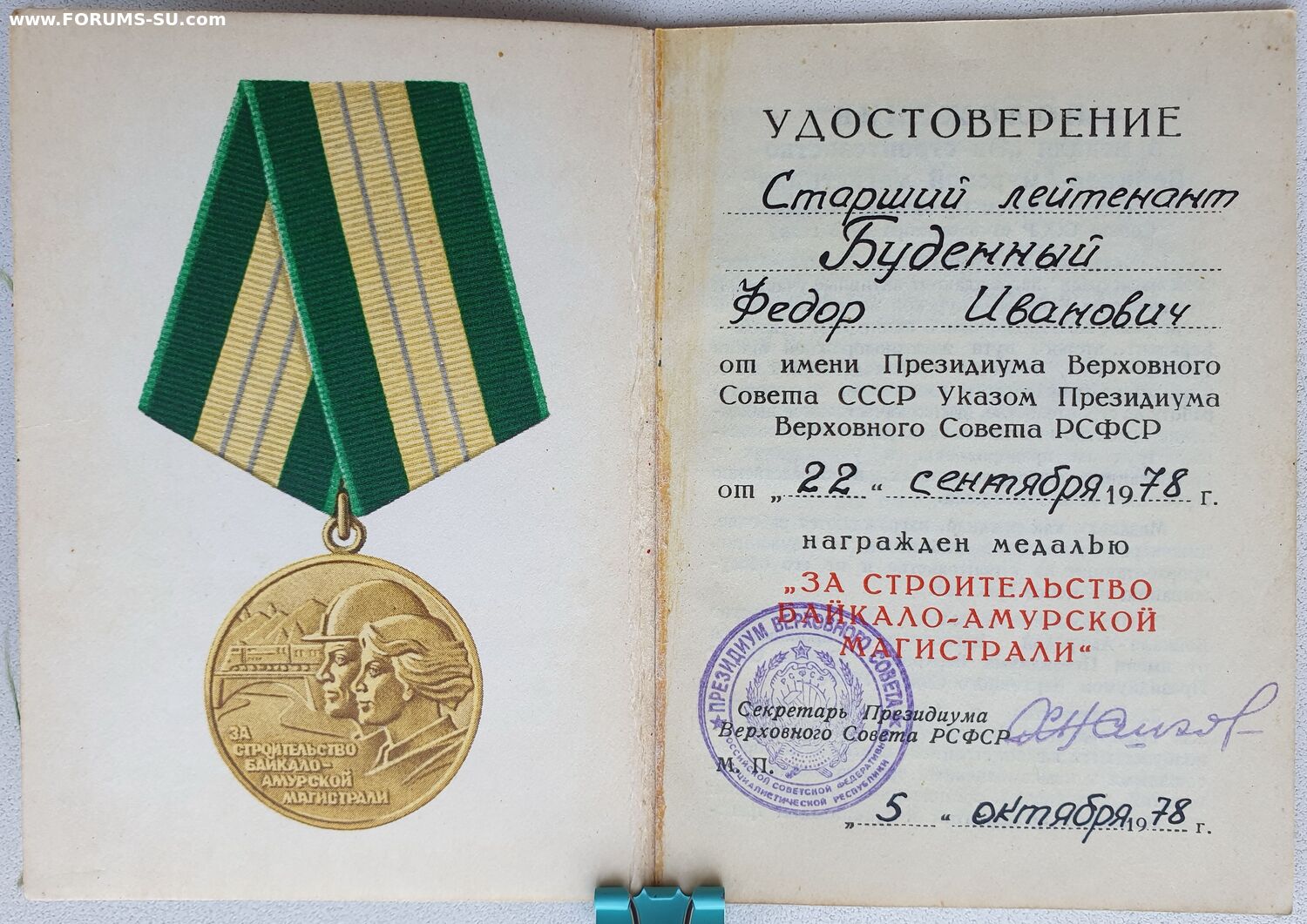 Три удостоверения на Будённого. БАМ и За отличие в воинской службе - приказы в один день.