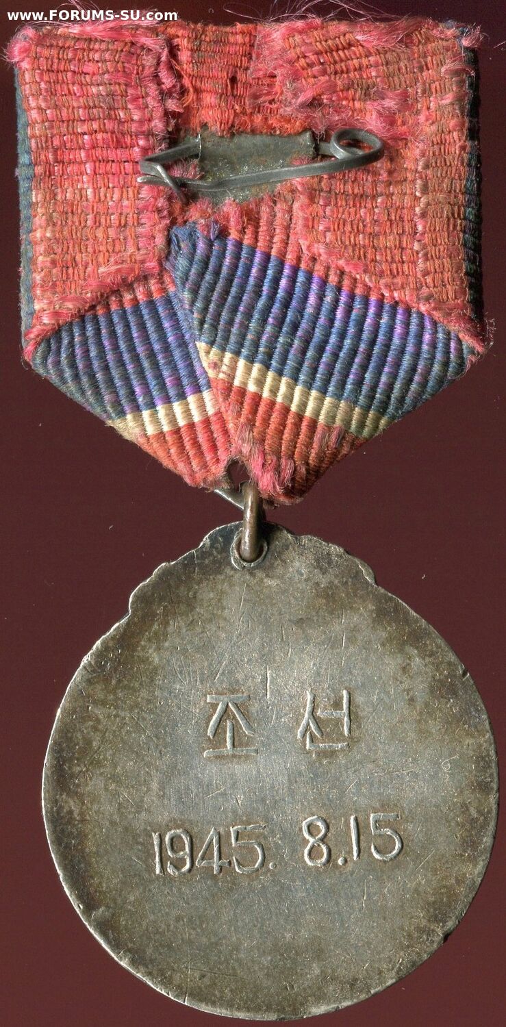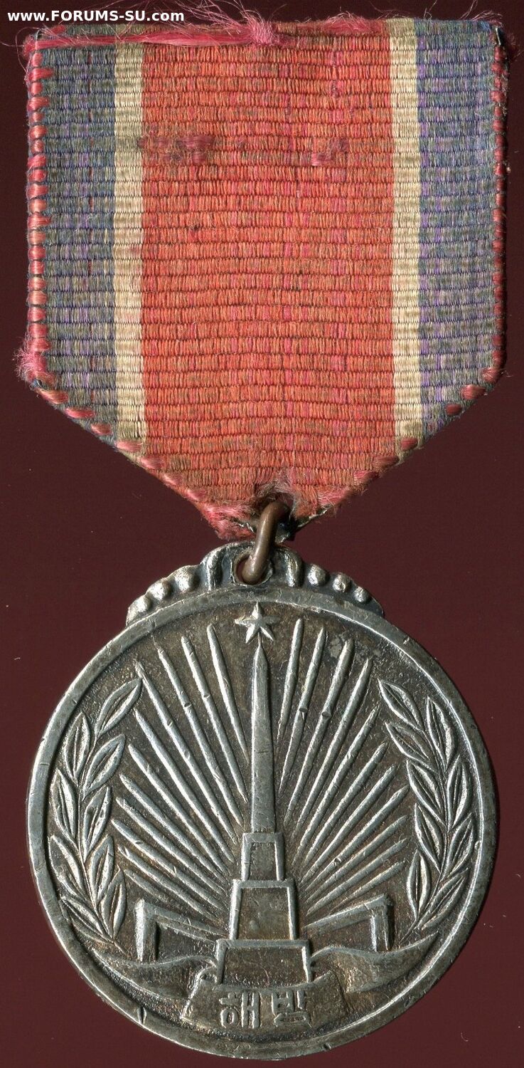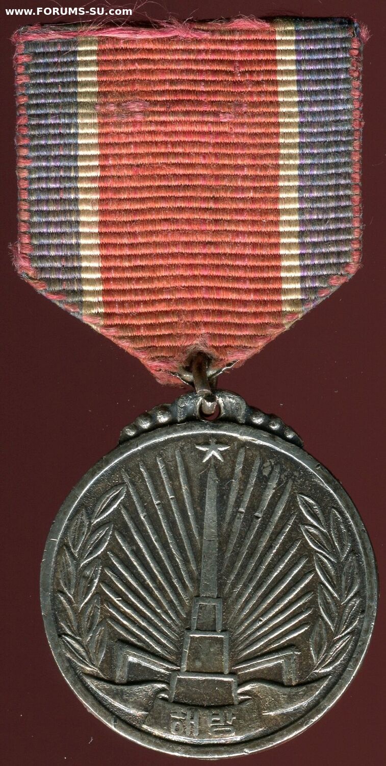 "В ознаменование вечной благодарности корейского народа Великой Советской Армии, освободившей Корею от японских империалистов, учредить медаль "ЗА ОСВОБОЖДЕНИЕ КОРЕИ". Учреждена Указом Президиума Верховного Народного Собрания 15 октября 1948г. для награждения советских воинов.