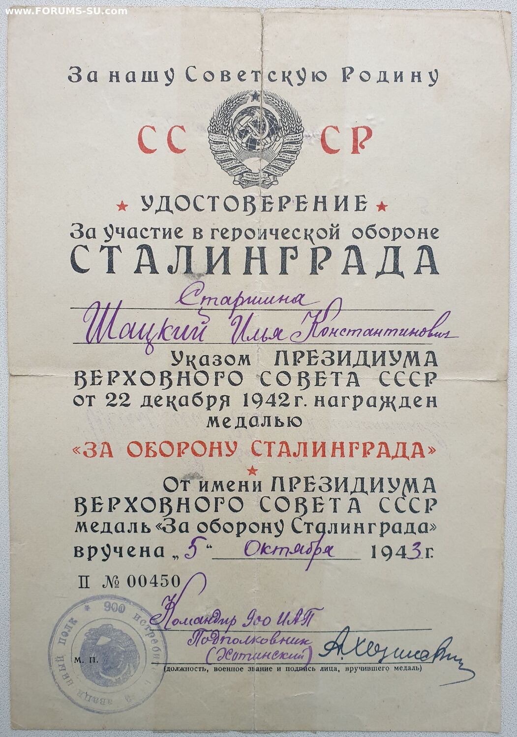 Пописал погибший в 1945-м подполковник Хотинский Александр Федорович