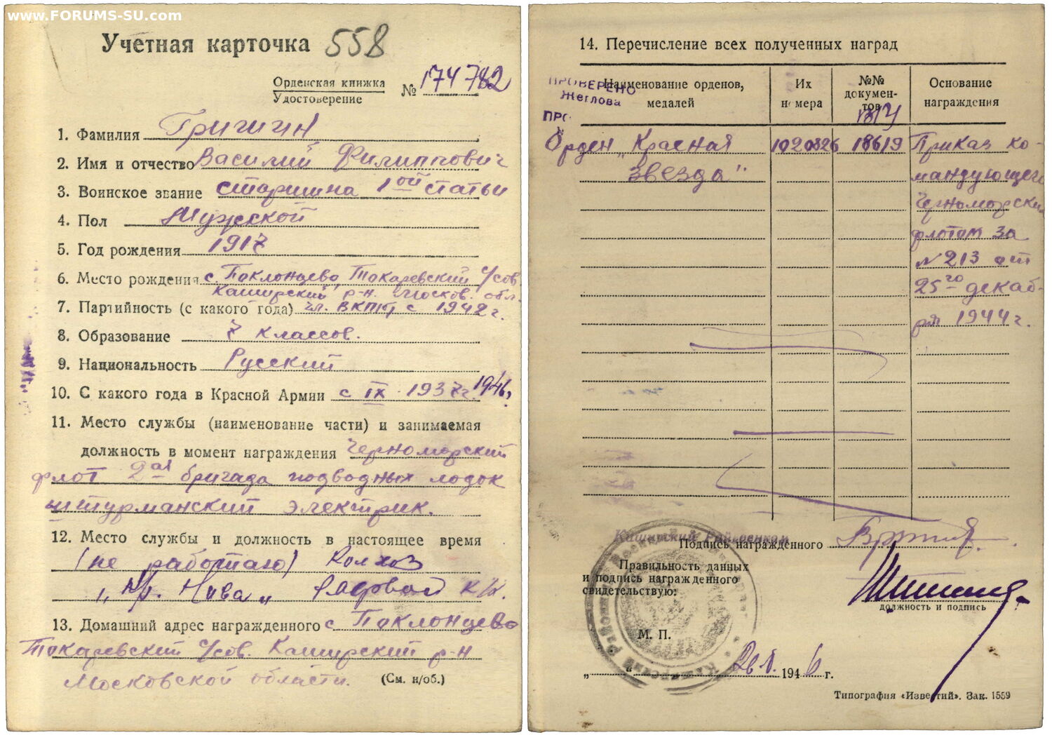 Красного Знамени, Суворова, Кутузова, Богдана Хмельницкого, Александра Невского, Ушакова, Нахимова, Отечественной Войны, Красной Звезды, Славы, За Службу Родине в ВС СССР