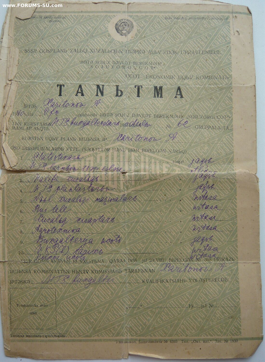 Гармонь двухрядная - одна, два немецких одеяла, плащ палатка немецкого образца, портфель, бинокль, материал на пару нательного белья, кожанный товар, три метра мануфактуры, два гражданских костюма.