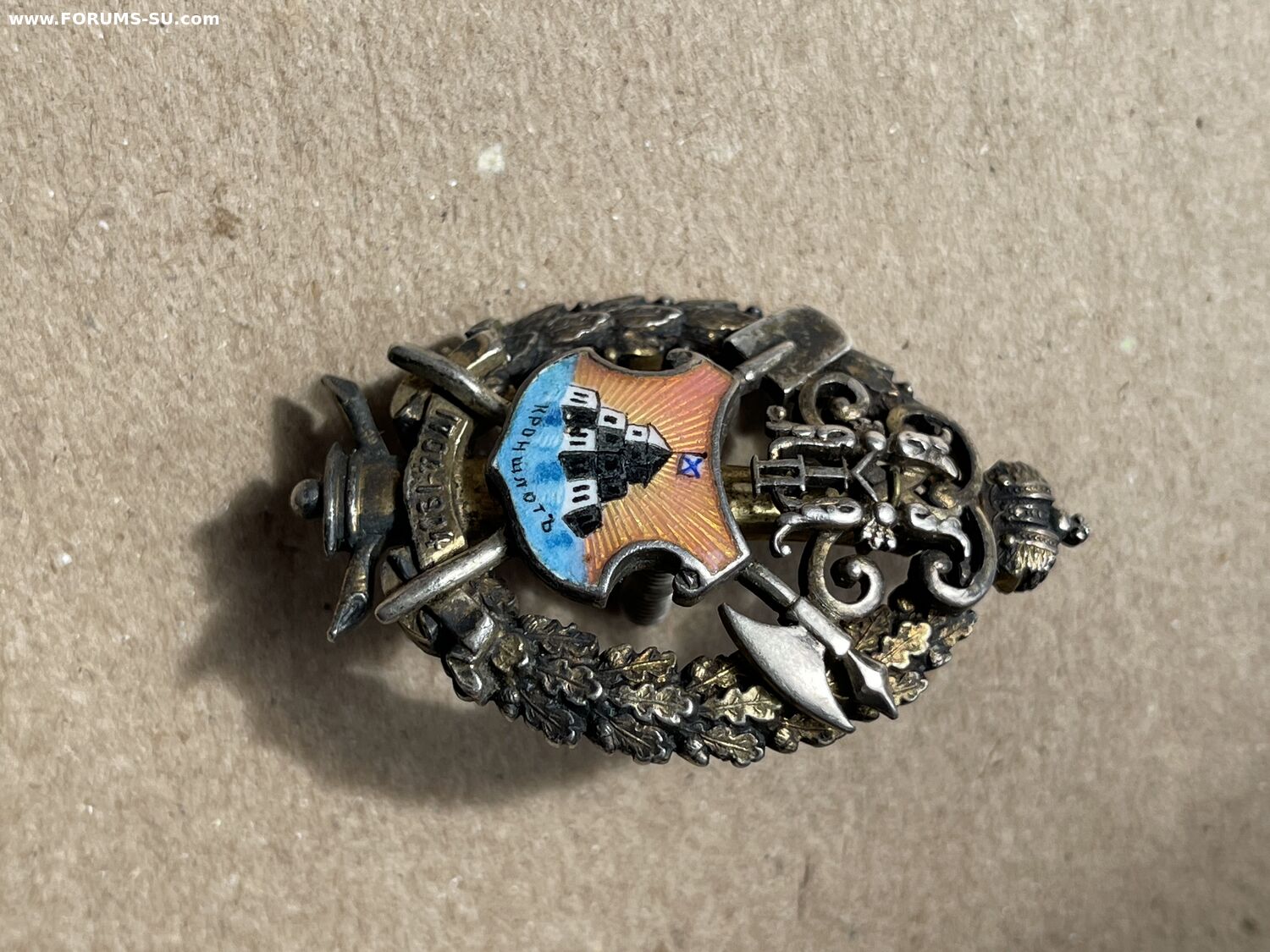 знак крепости Кроншлот, серебро, частично сохранившаяся позолота.