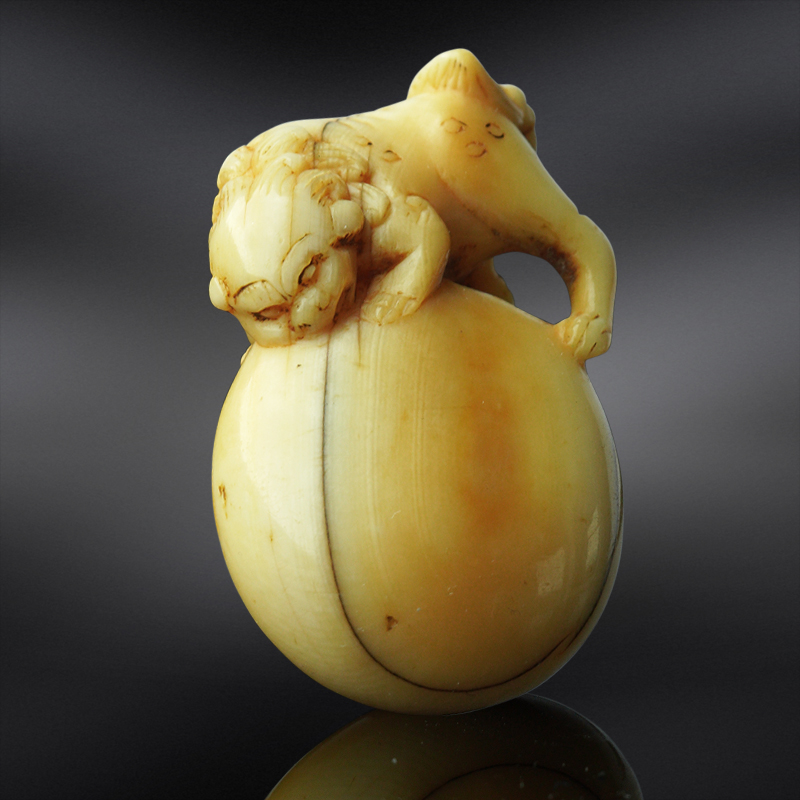 Добрый день уважаемые форумчане, помогите оценить приблизительный возраст и стоимость нэцке (привезено в подарок из Японии около 20 лет назад), фото немного желтит. Заранее благодарен!