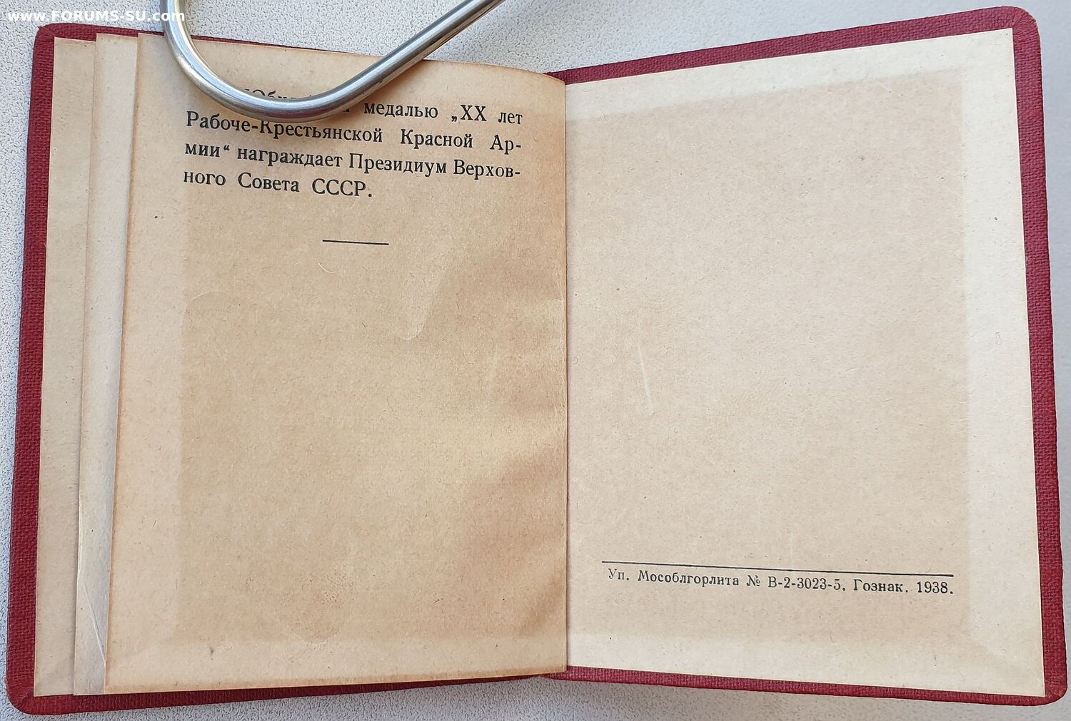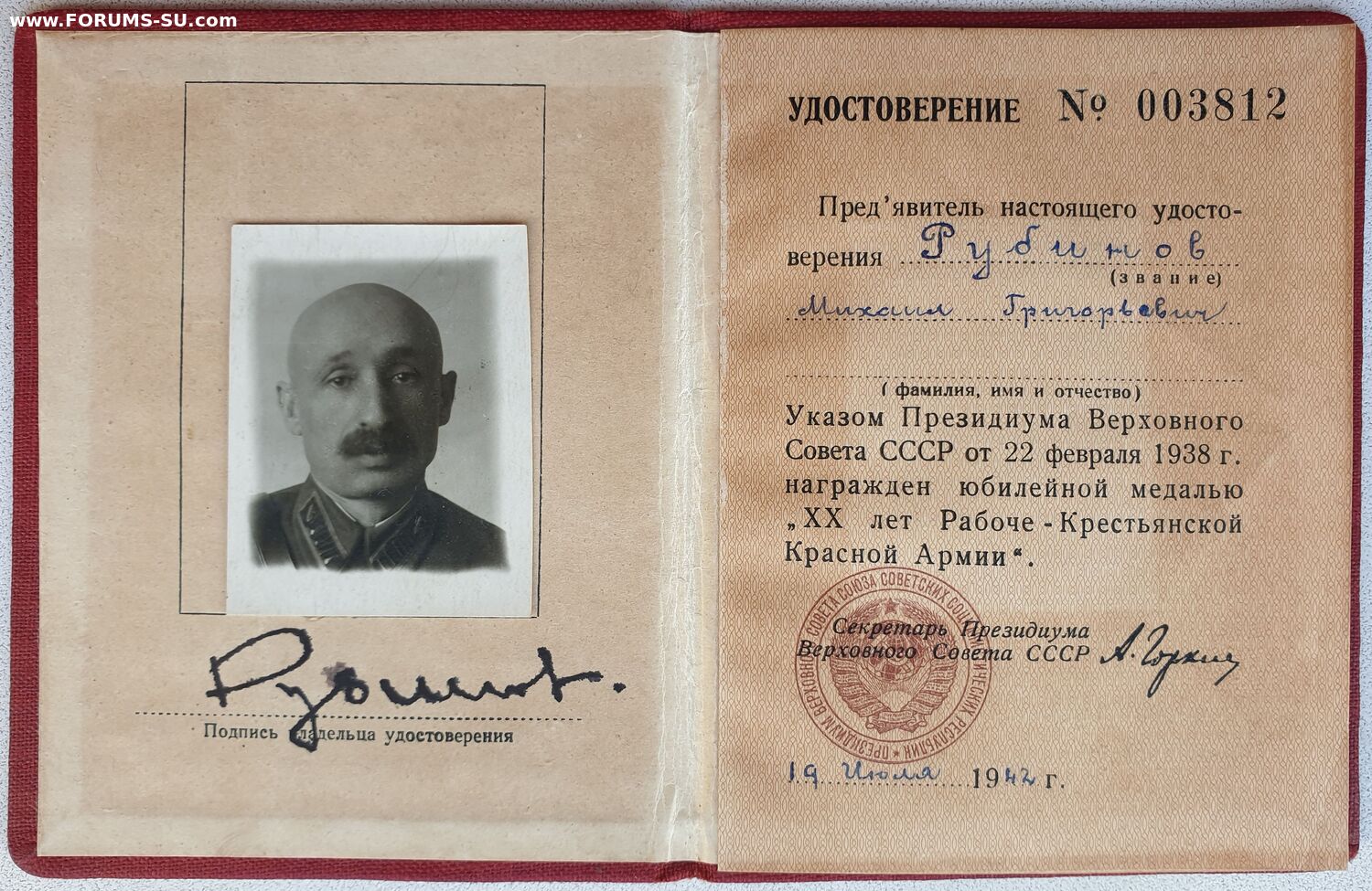 Судя по всему документ на 20 лет РККА вручен повторно.