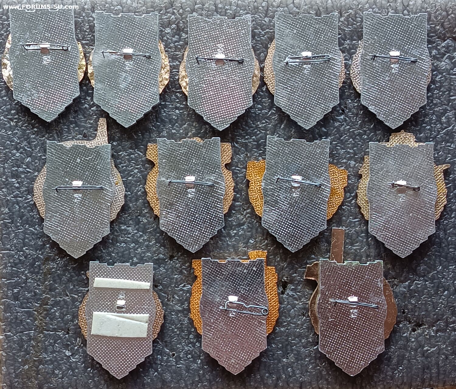 У одного значка нет заколки, у второго, еле держится