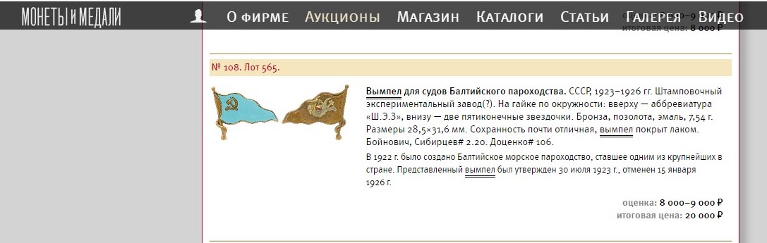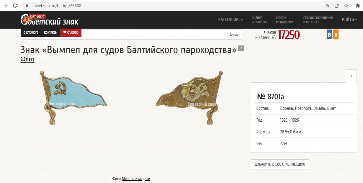 Знак «Вымпел для судов Балтийского пароходства».1923-1926 гг.