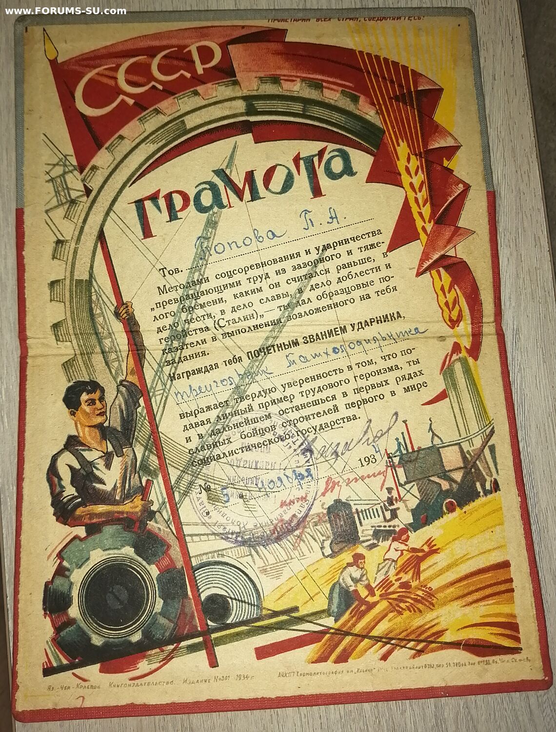 Грамота "Лучшему ударнику" 1934 год (сохран) Русант - 30 авг 2023 10:53.35 × Мини профиль пользователя Русант Сообщения: 2849 Зарегистрирован: 09 фев 2011 16:52.40 Откуда: Ср.Азия Статус: Не в сети - 30 авг 2023 10:53.35 #6721525 Цена 3ооо (доставка включена).Добавлено B 14:06 13.09.2023:резервVitali писал(а):Предупреждение: Пункт 12 Чего не понимают,тем не владеют!