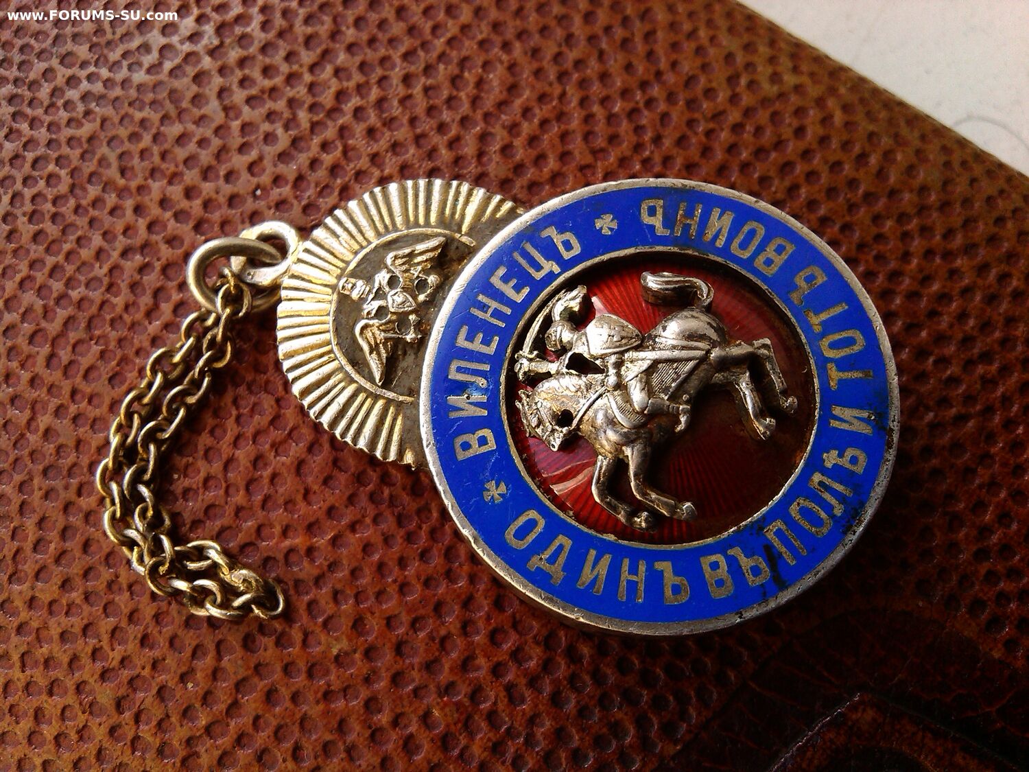 В серебре с золочением верхней части,сытый,проба на ушке,с реверса утрата голубой эмали ,красивая проработка всадника ,эмаль под всадником целая на гильоше!