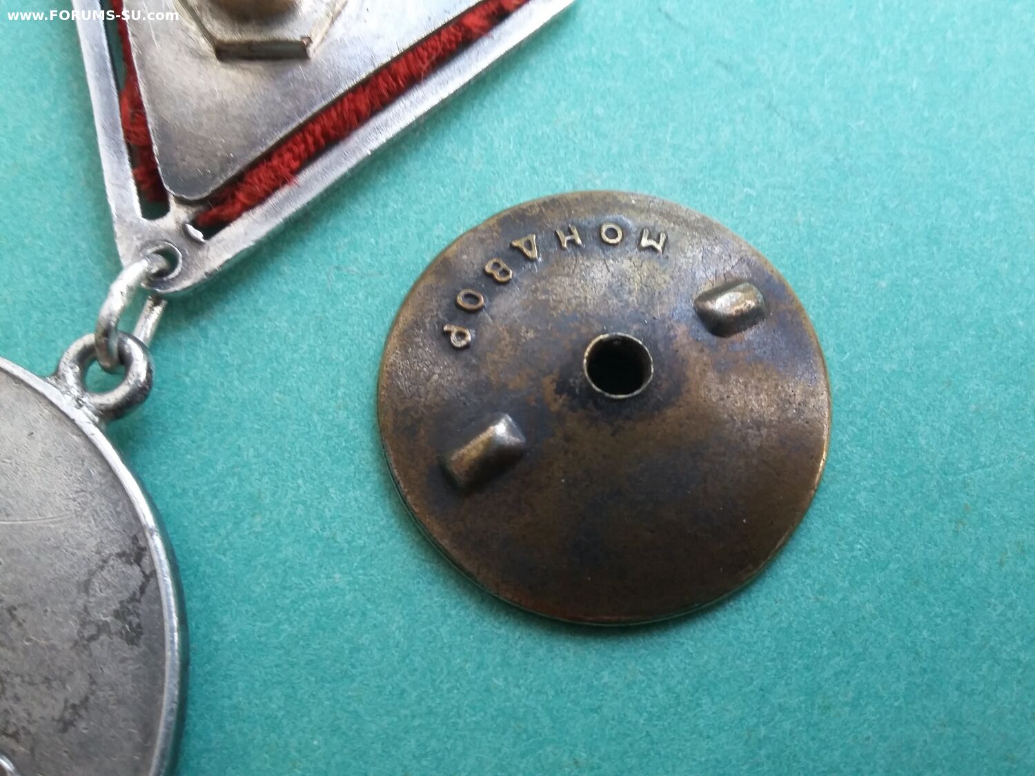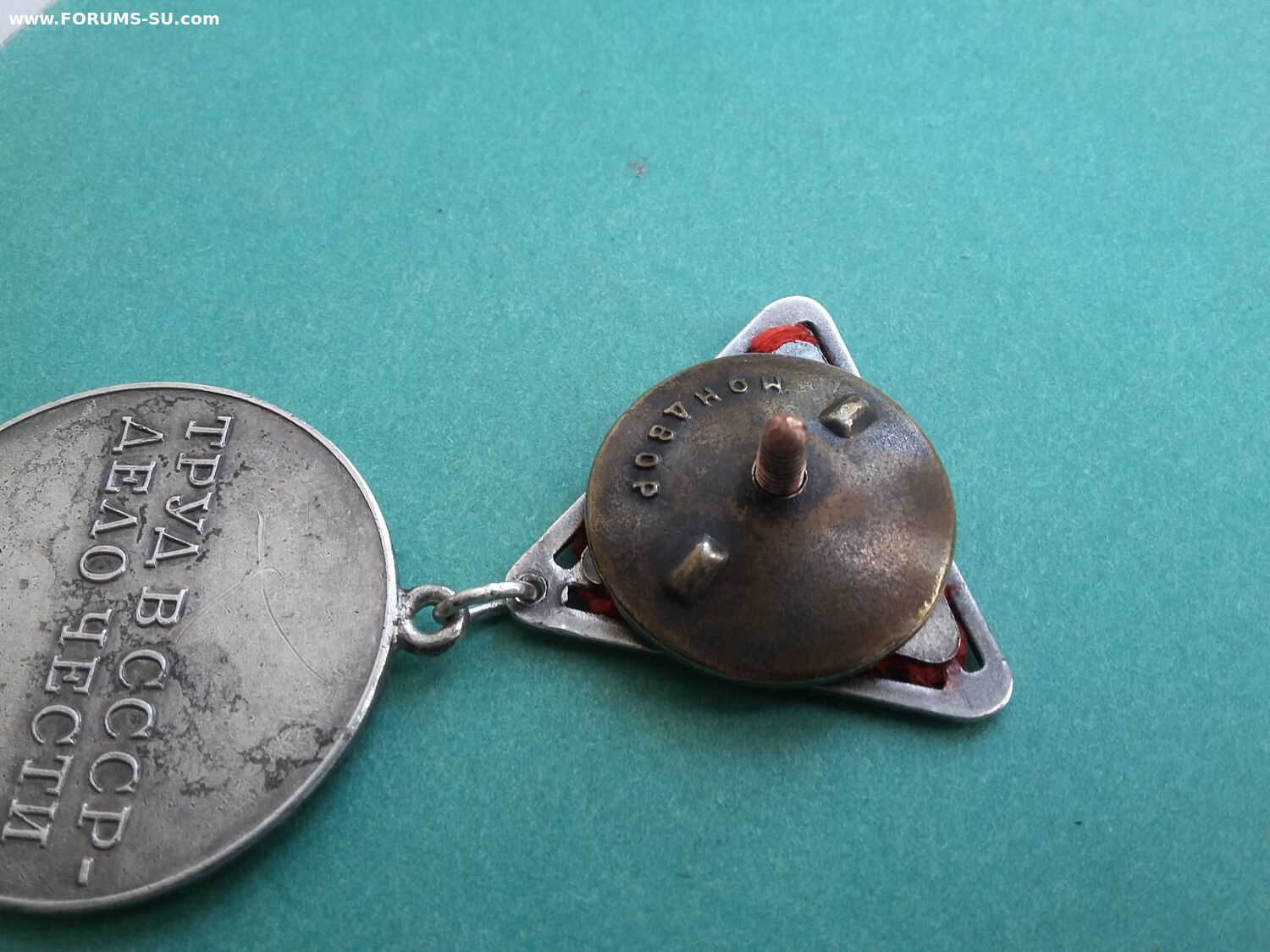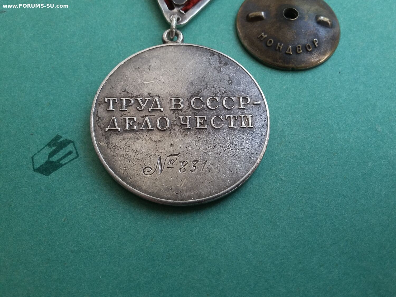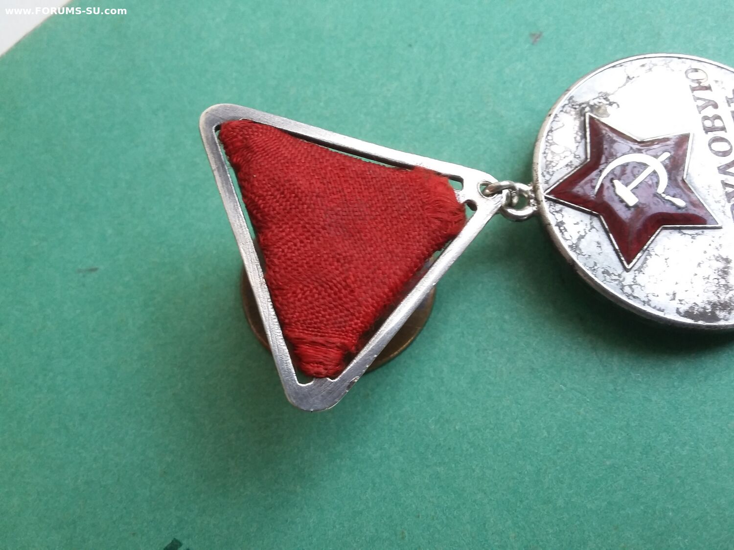 У эмали на звездочке хороший сохран, а в буквах кое где осыпалась. Всё детали медали подлинные, но это сборняк. Звено запаяно, но не на мондворе. Лента не родная