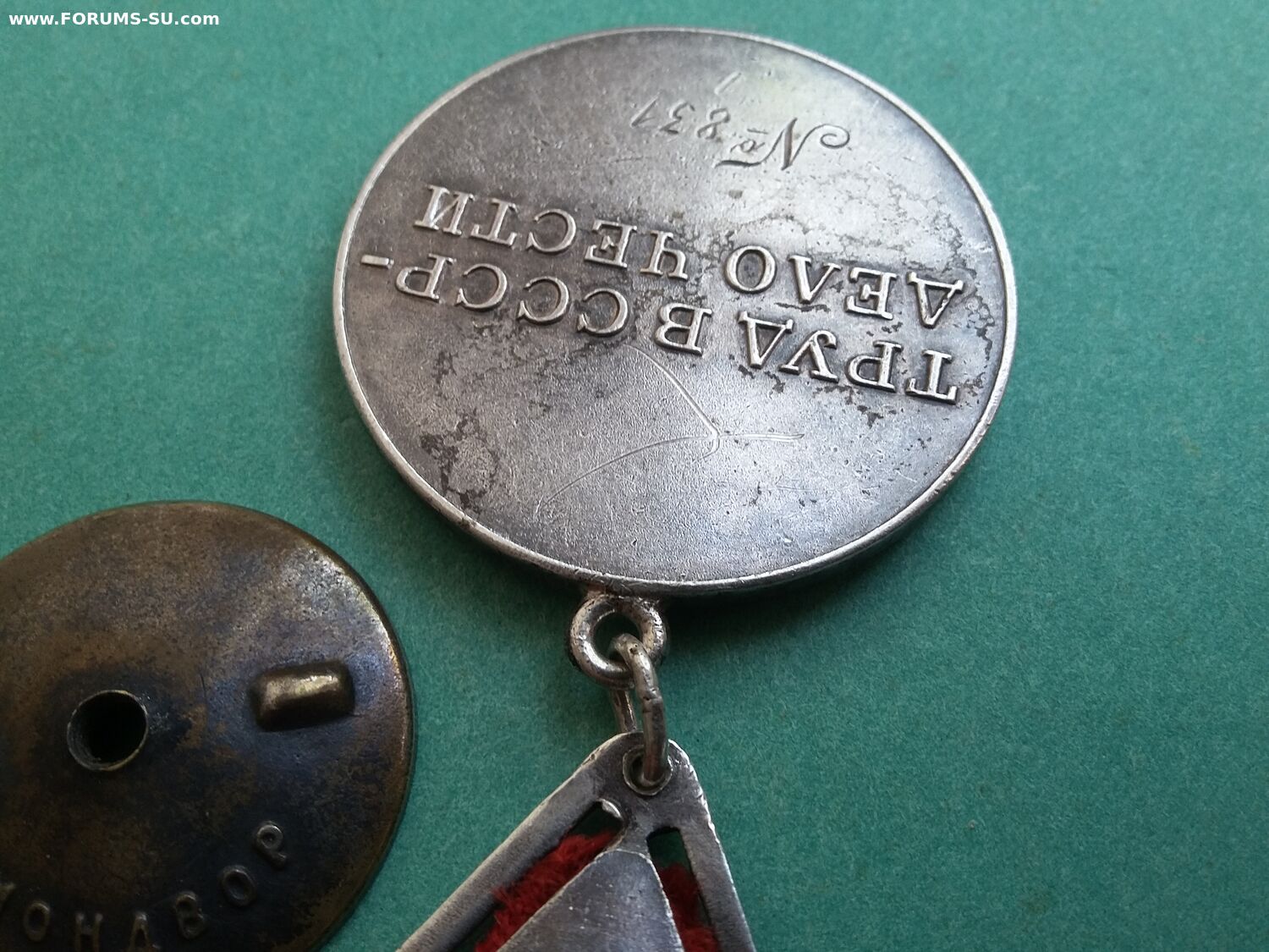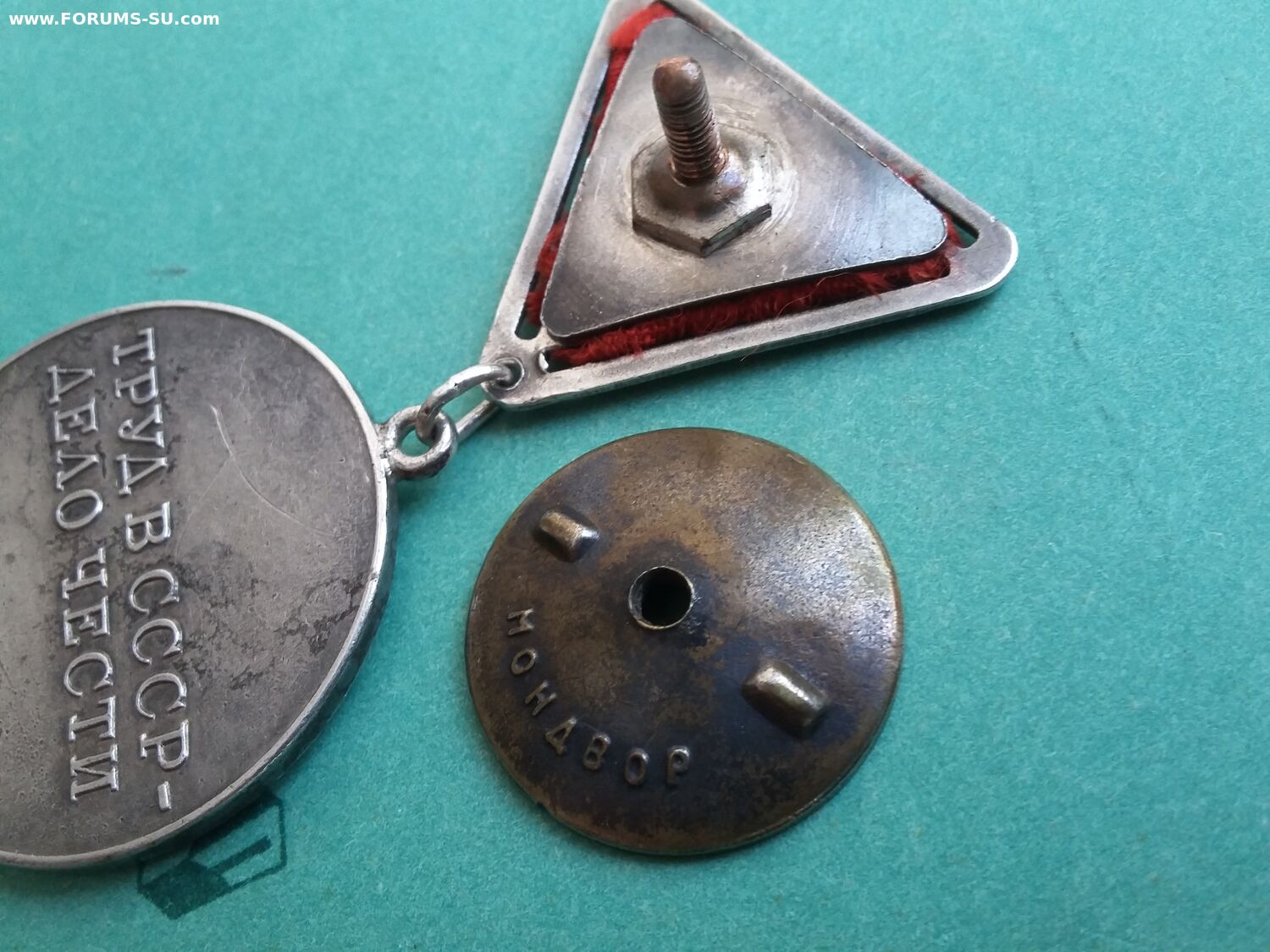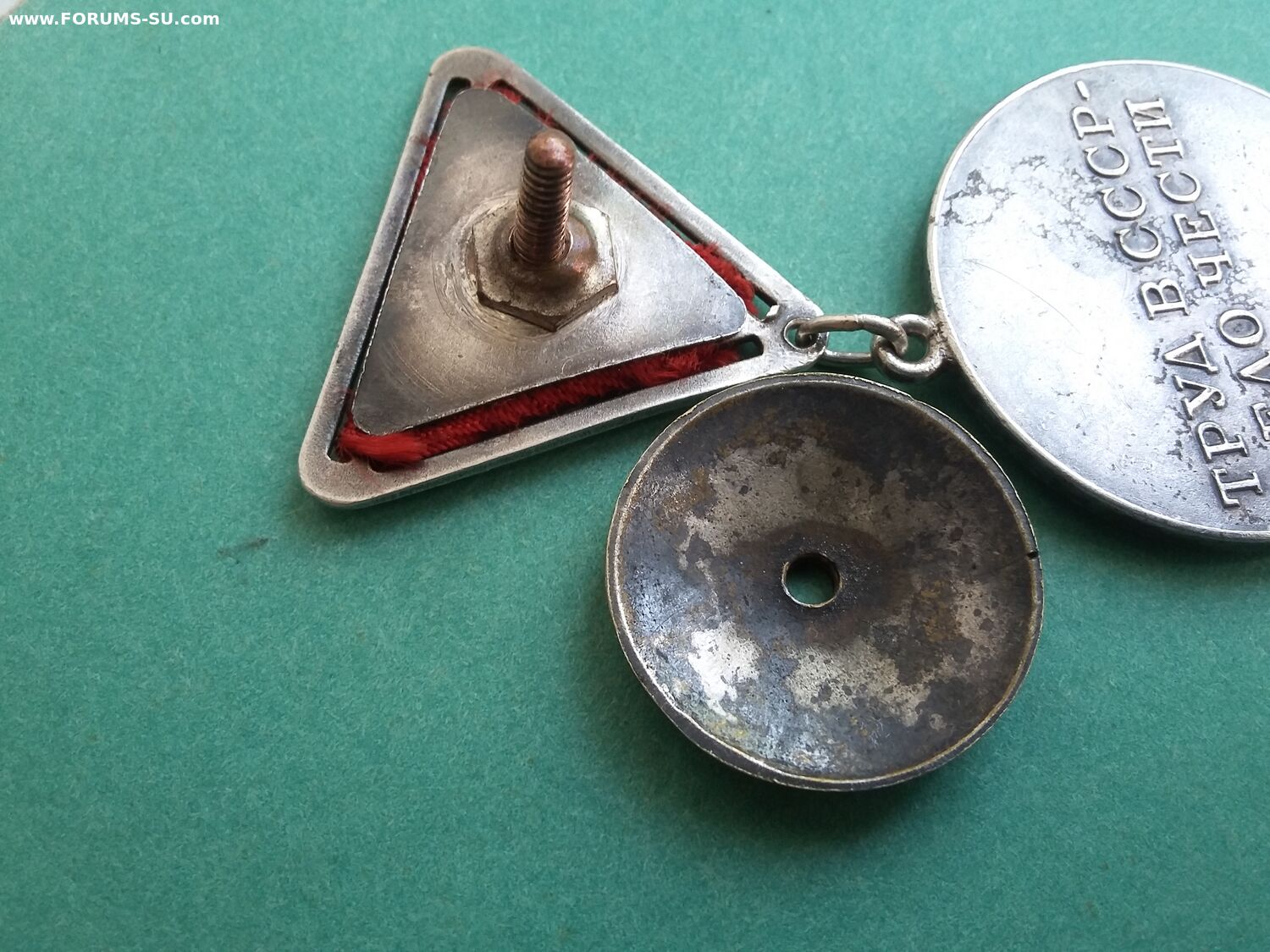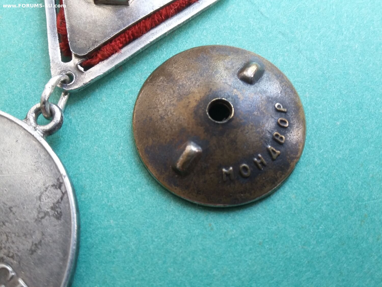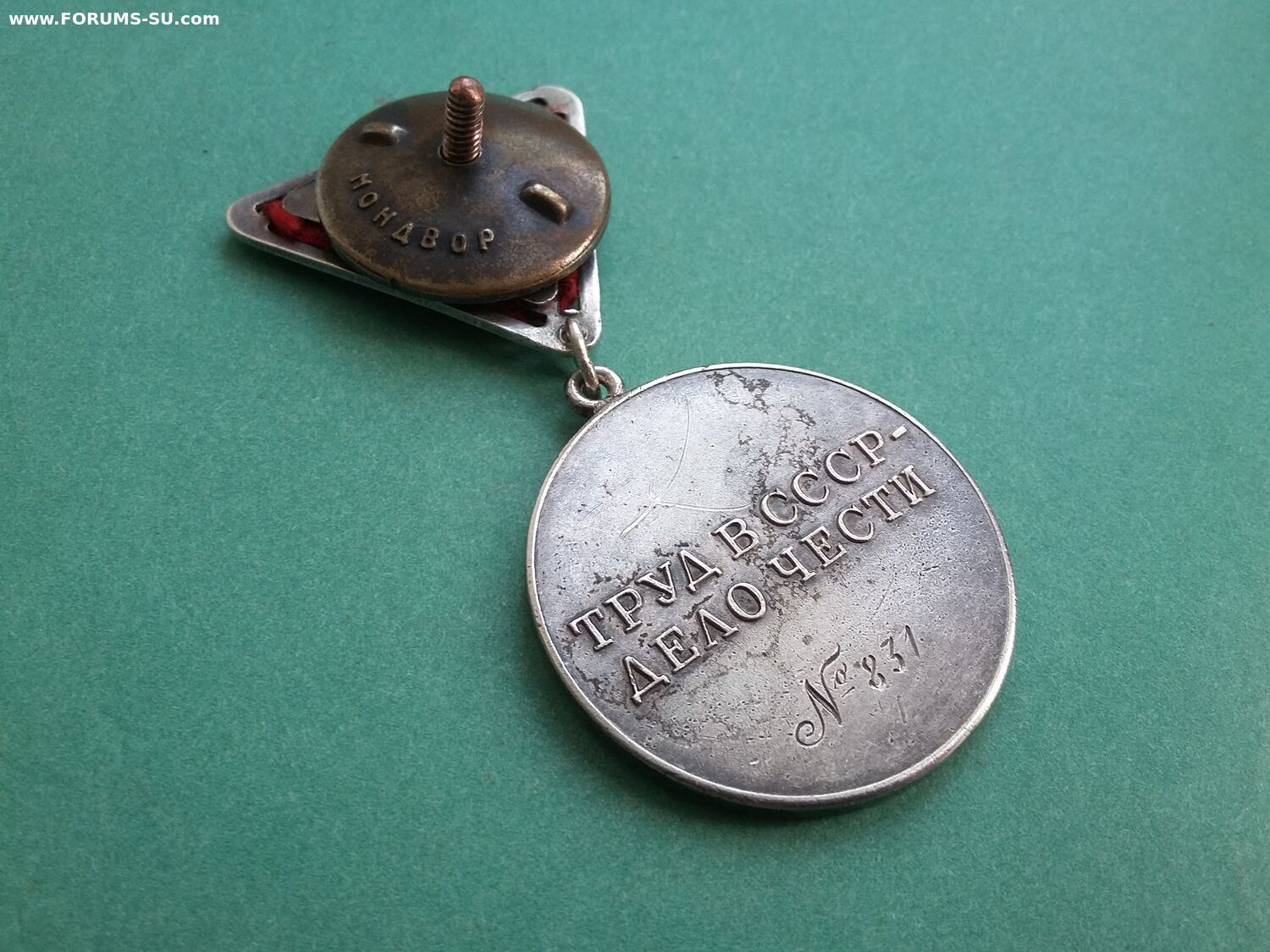 У эмали на звездочке хороший сохран, а в буквах кое где осыпалась. Всё детали медали подлинные, но это сборняк. Звено запаяно, но не на мондворе. Лента не родная