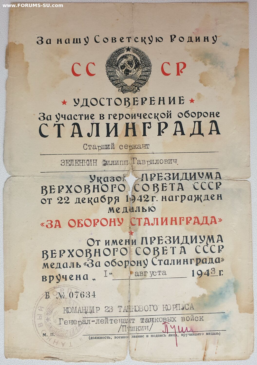 Пушкин Ефим Григорьевич кавалер звезды ГСС № 622