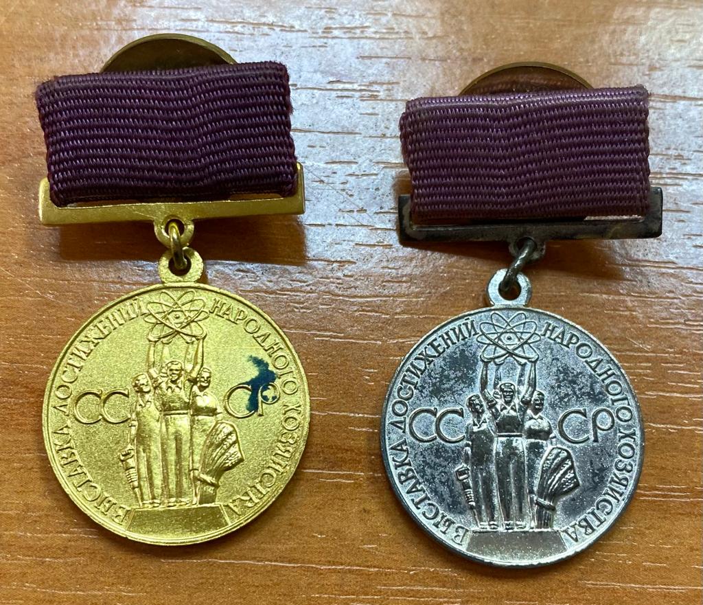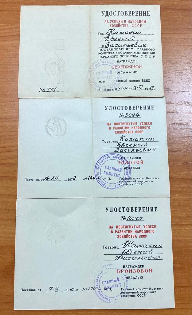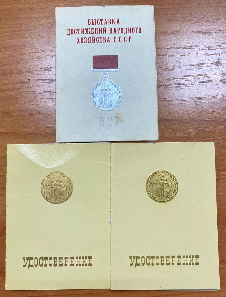 Лот состоит из малой золотой, малой серебряной медали ВДНХ и трех документов.