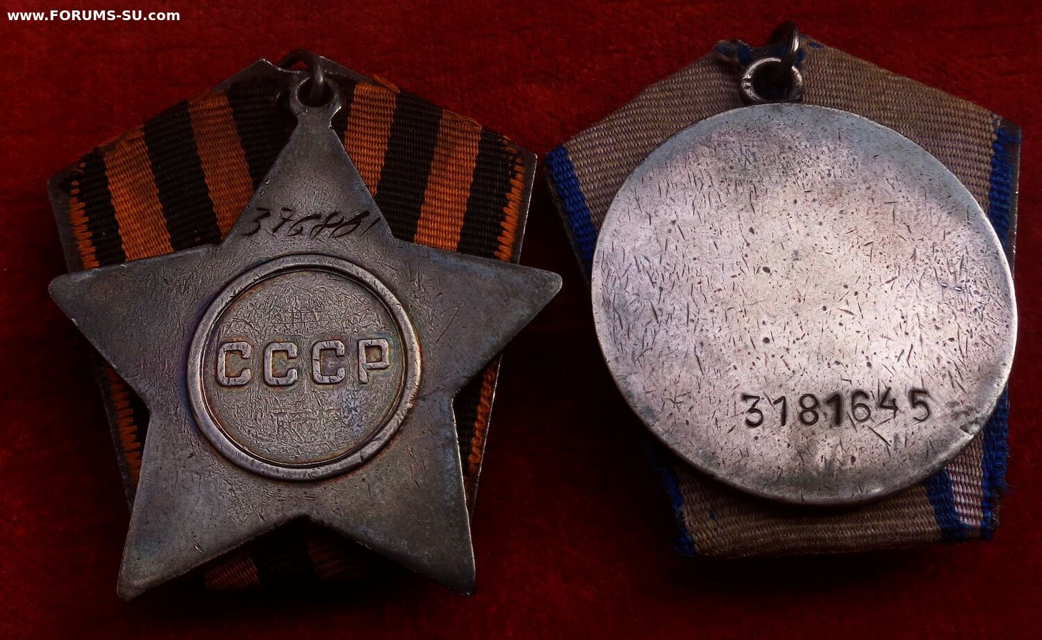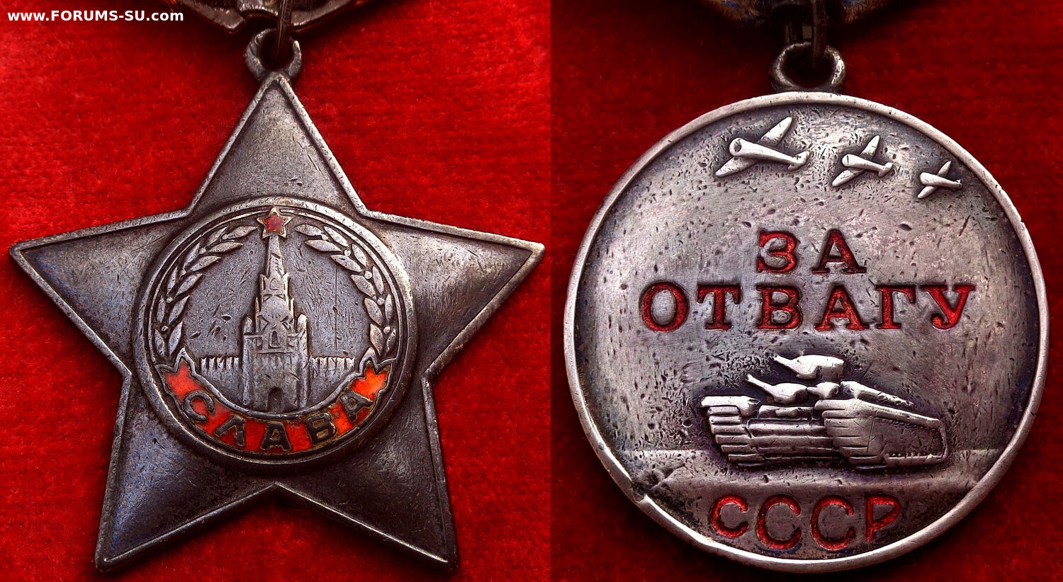 На Ордене Славы - Родная эмаль без подмазок, со следами носки. На Медали за Отвагу Родной лак, с микровыкрошками. Оба промзвена запаяны.