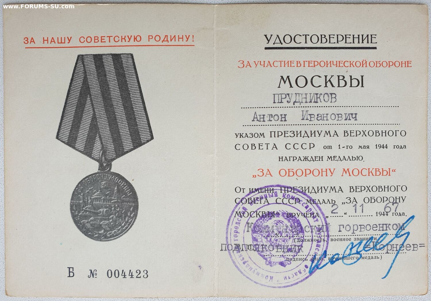 Типографский бланк 1944 год на гербе 15 лент