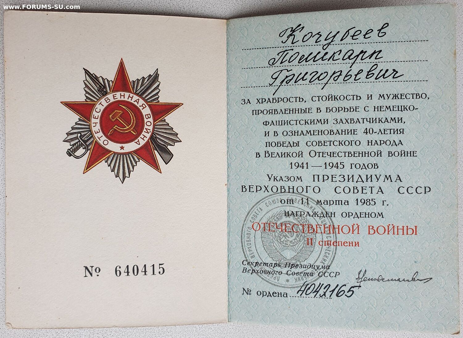 Отличный практически неношеный комплект. Одну КЗ только давно уронили. Всё в красивой патине и родном сборе. Также в лот входит ОВ 2ст. № 4.042.165 с орденской книжкой. На КЗ копий наградных листов у меня нет.