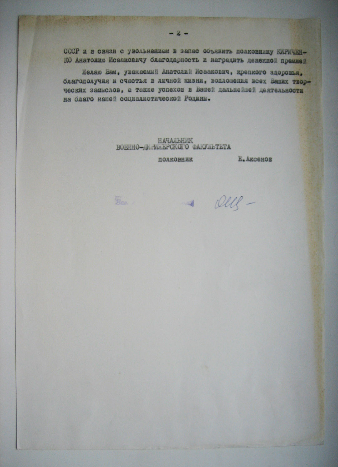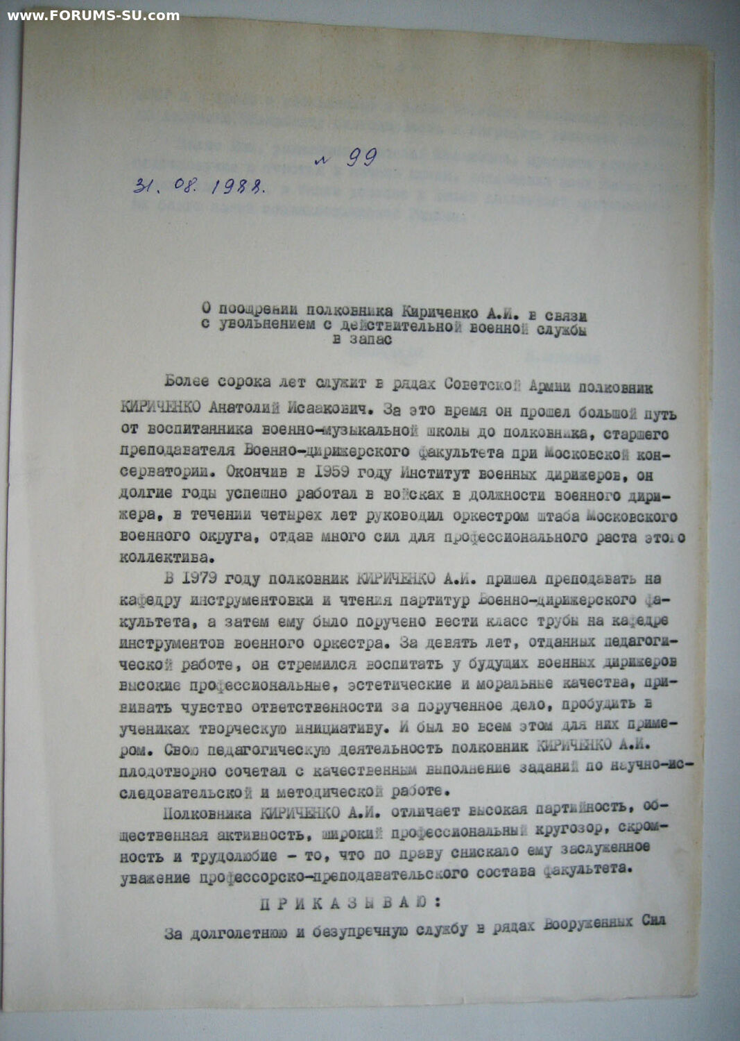 Благодарственная грамота на военного дирижёра еврея + приказ о поощрении.