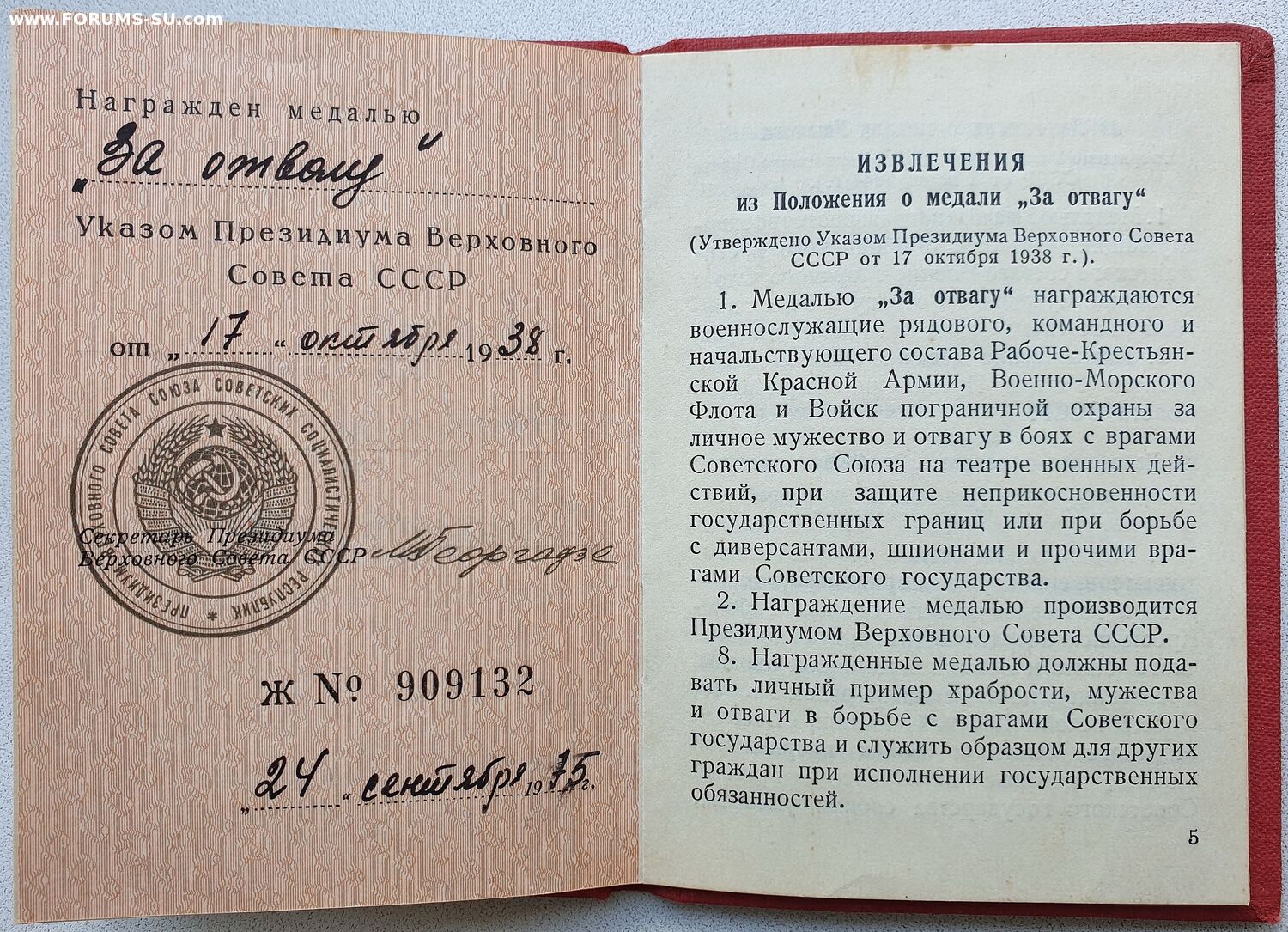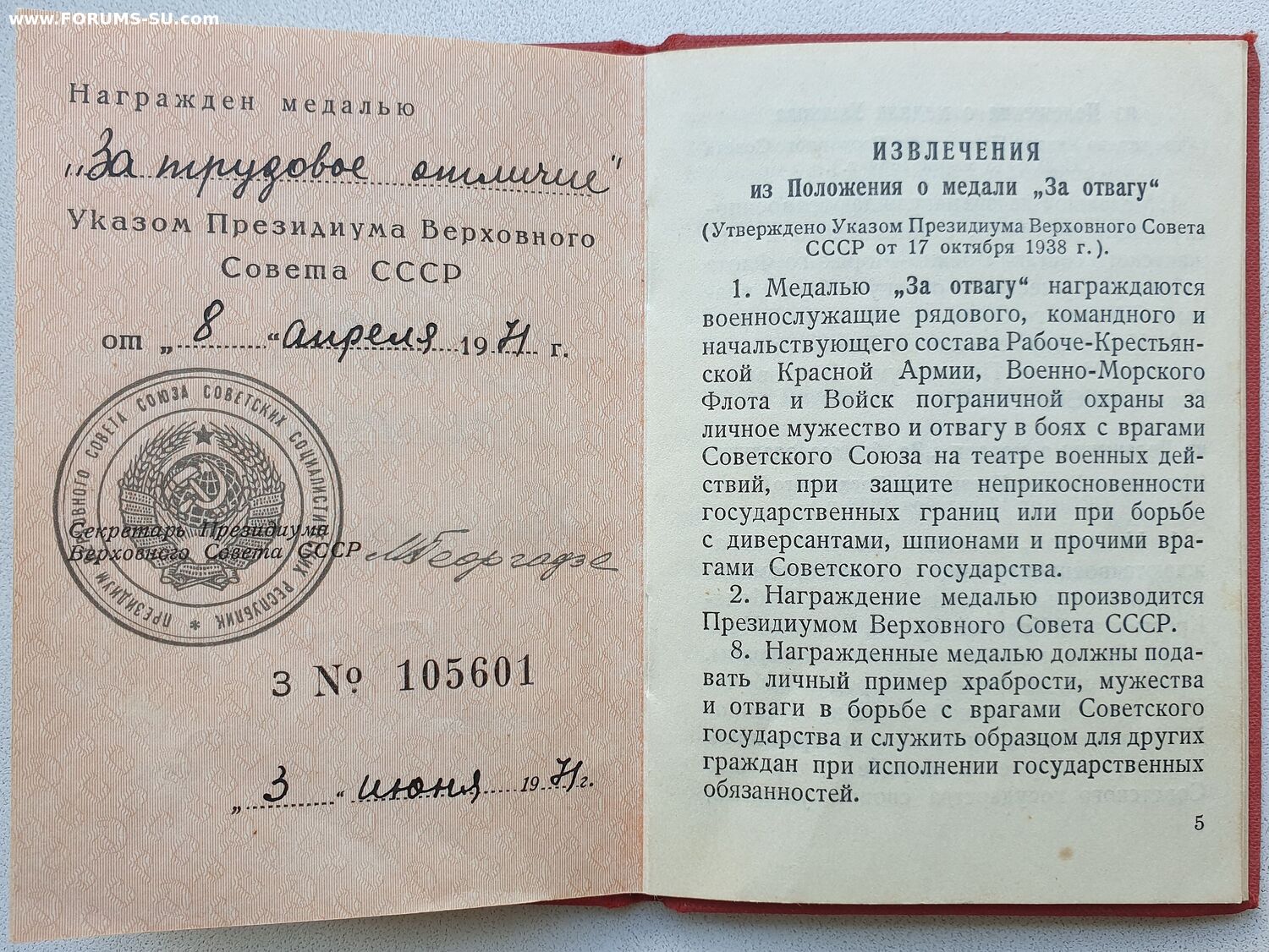 Доки к Отваге и ЗаБЗ номера подряд. В графе указов писарь внёс даты учреждения этих медалей.