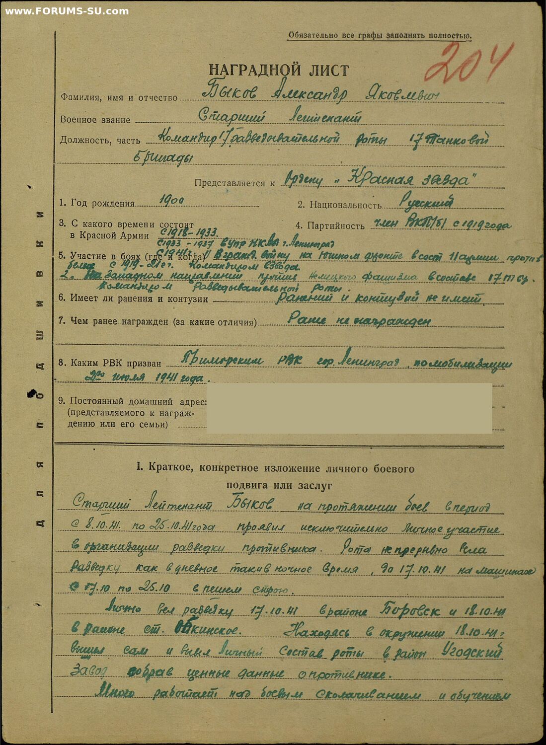 Орден вручён в ноябре 1941-го.