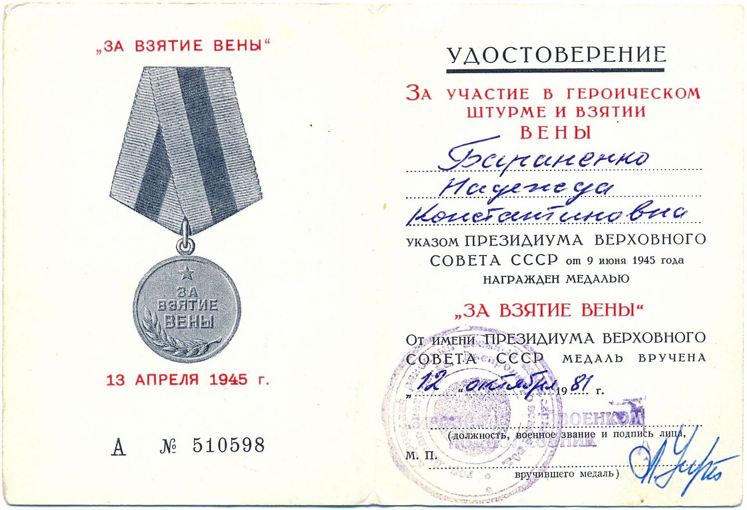 Вена - не дубликат. Выдана в военкомате города Днепропетровск. Остальные два дока с подписью генерала, заместителя начальника пятого управления главного управления кадров министерства обороны СССР.